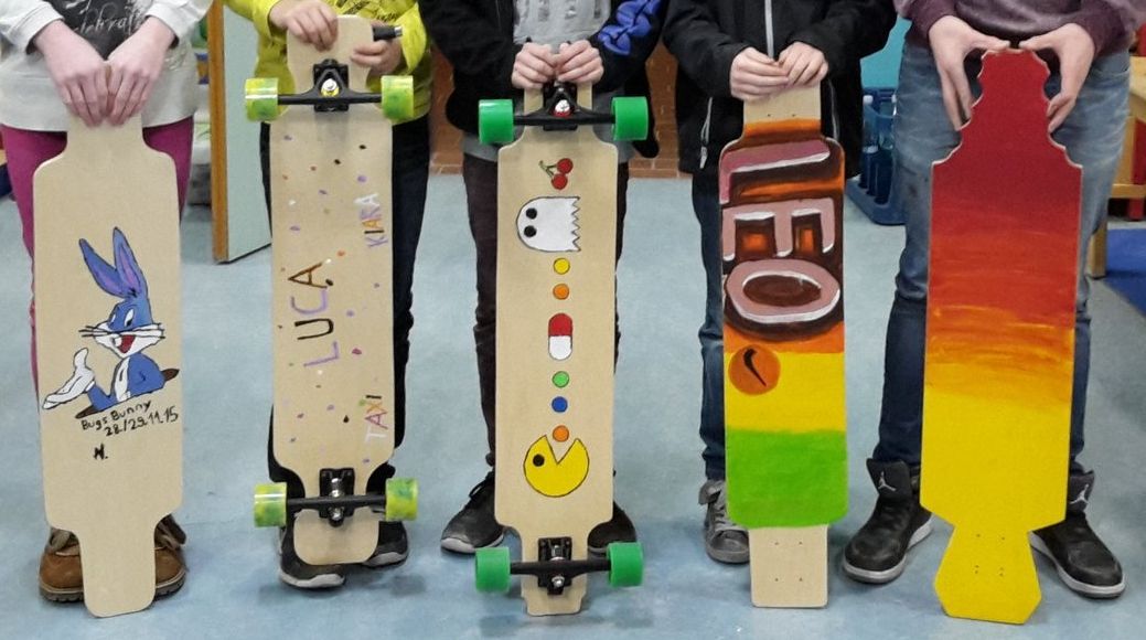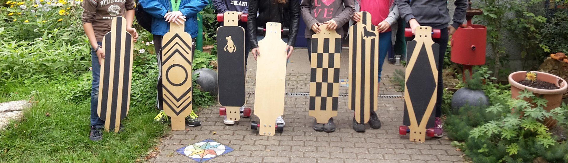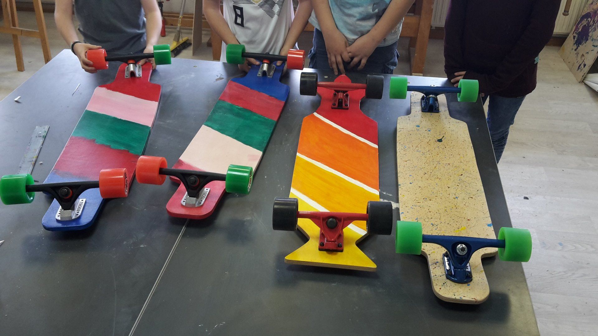 Longboardbaukurs mit Jugendlichen, gefördert durch das ZDI Köln ( Zentrum durch Innovation) mit Katrin und EIk, Juli 22