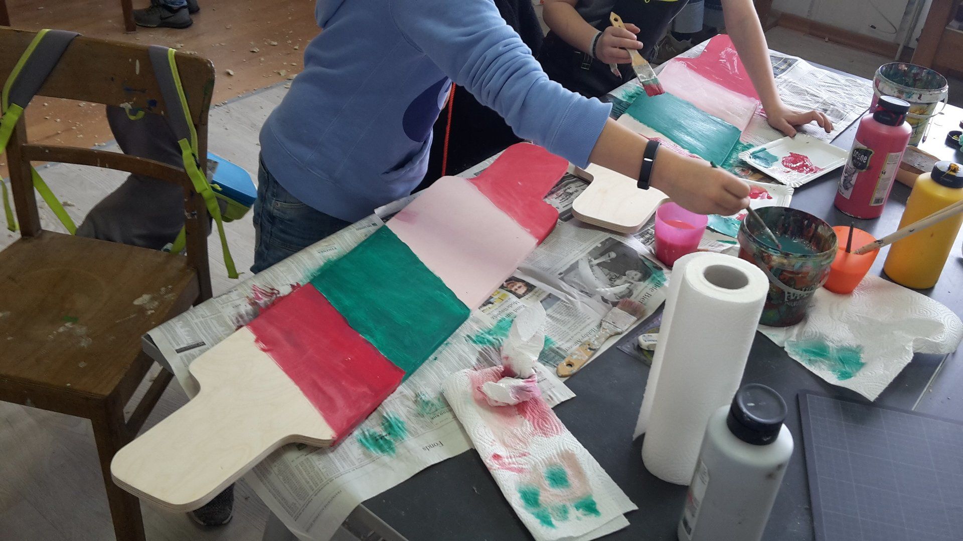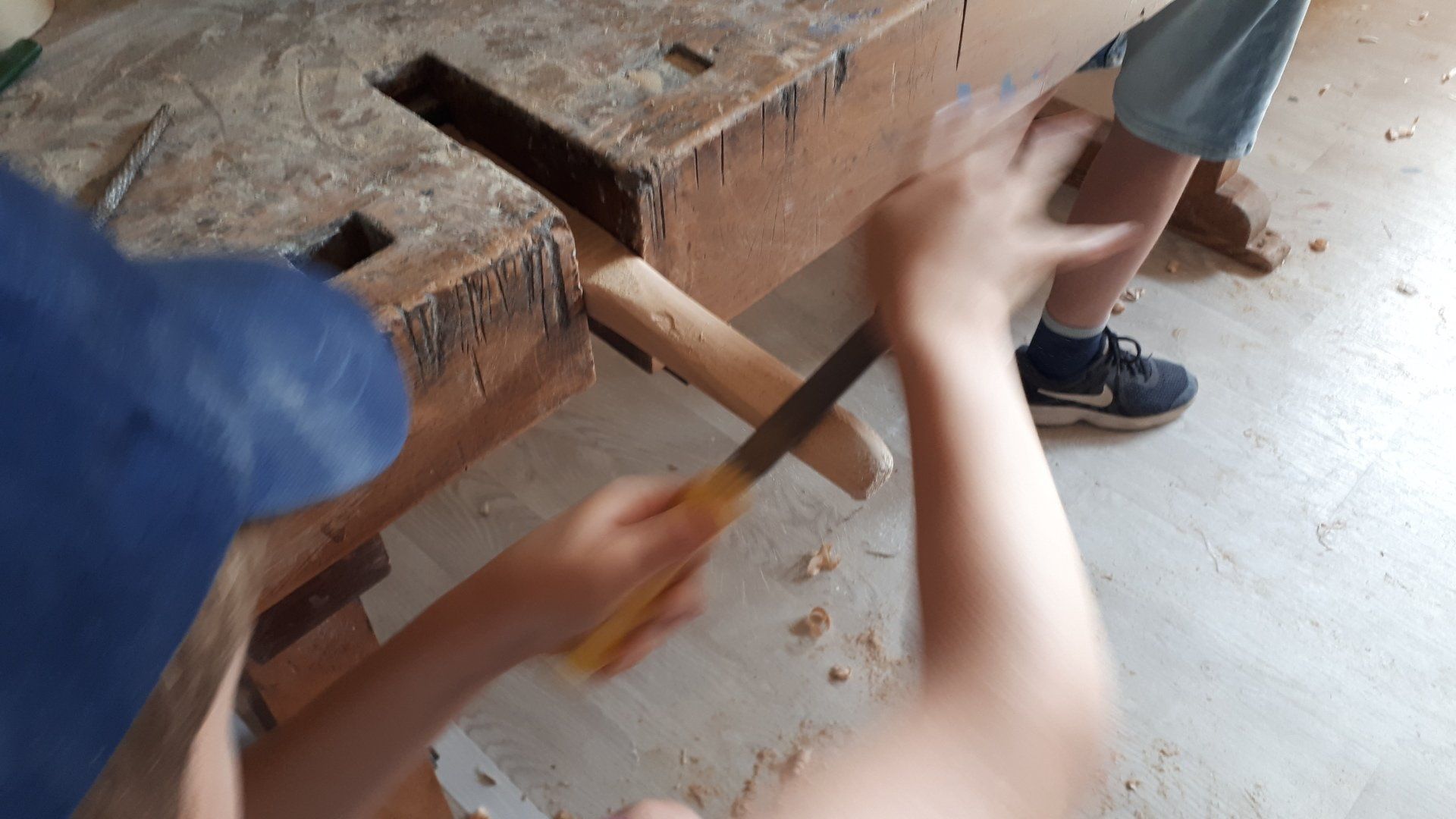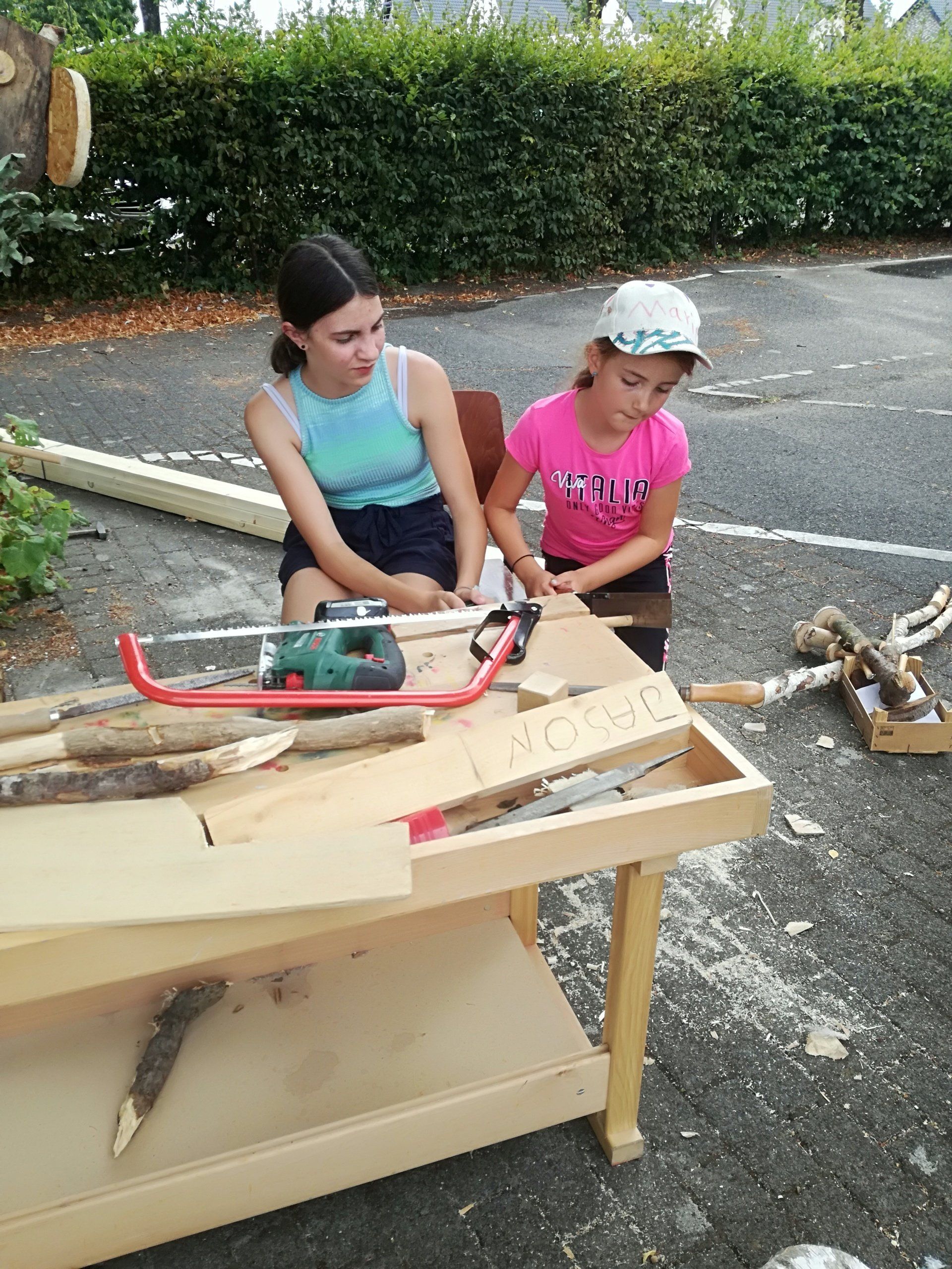 Longboardbaukurs mit Jugendlichen, gefördert durch das ZDI Köln ( Zentrum durch Innovation) mit Katrin und EIk, Juli 22