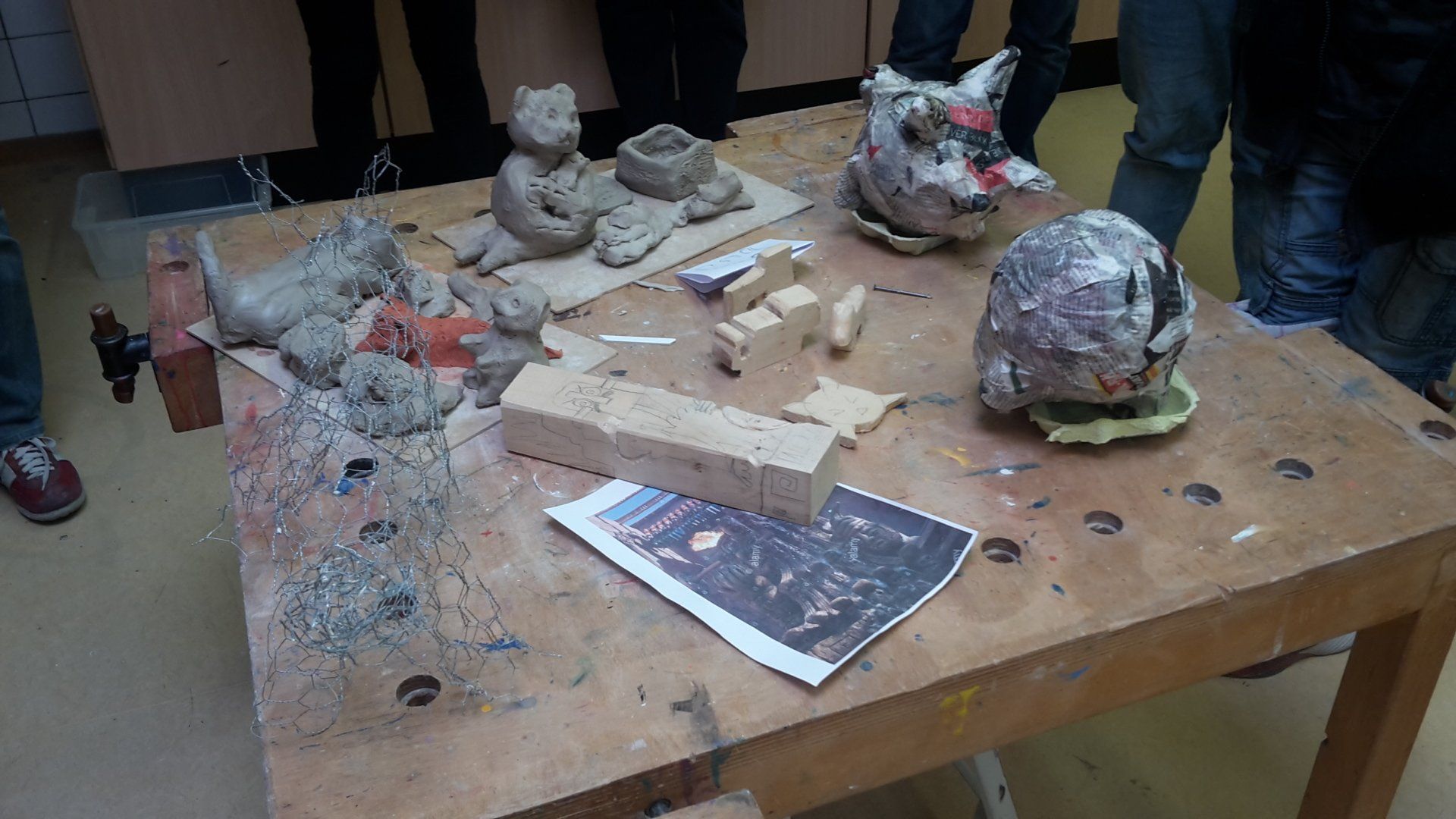 " Held*innen/ Antiheld*innen- Projekt Literatur und Plastik " mit Katrin und der Verlegerin für mehrsprachliche Bücher, " Schauhoer-Verlag" Patricia Hahne -Wolter, in der Gesamtschule Bergheim, 8. /9. Klasse im Rahmen von Kultur und Schule April22