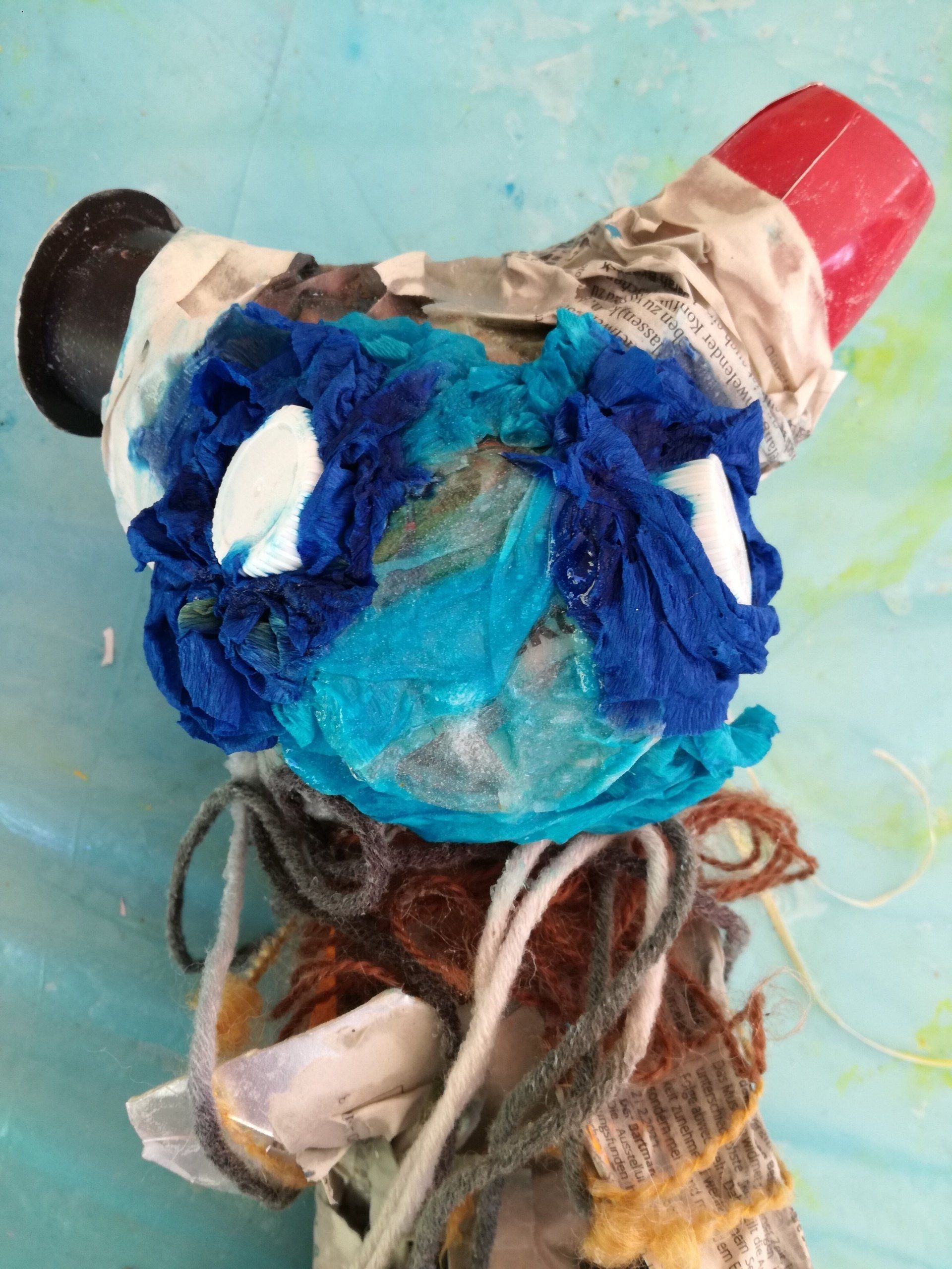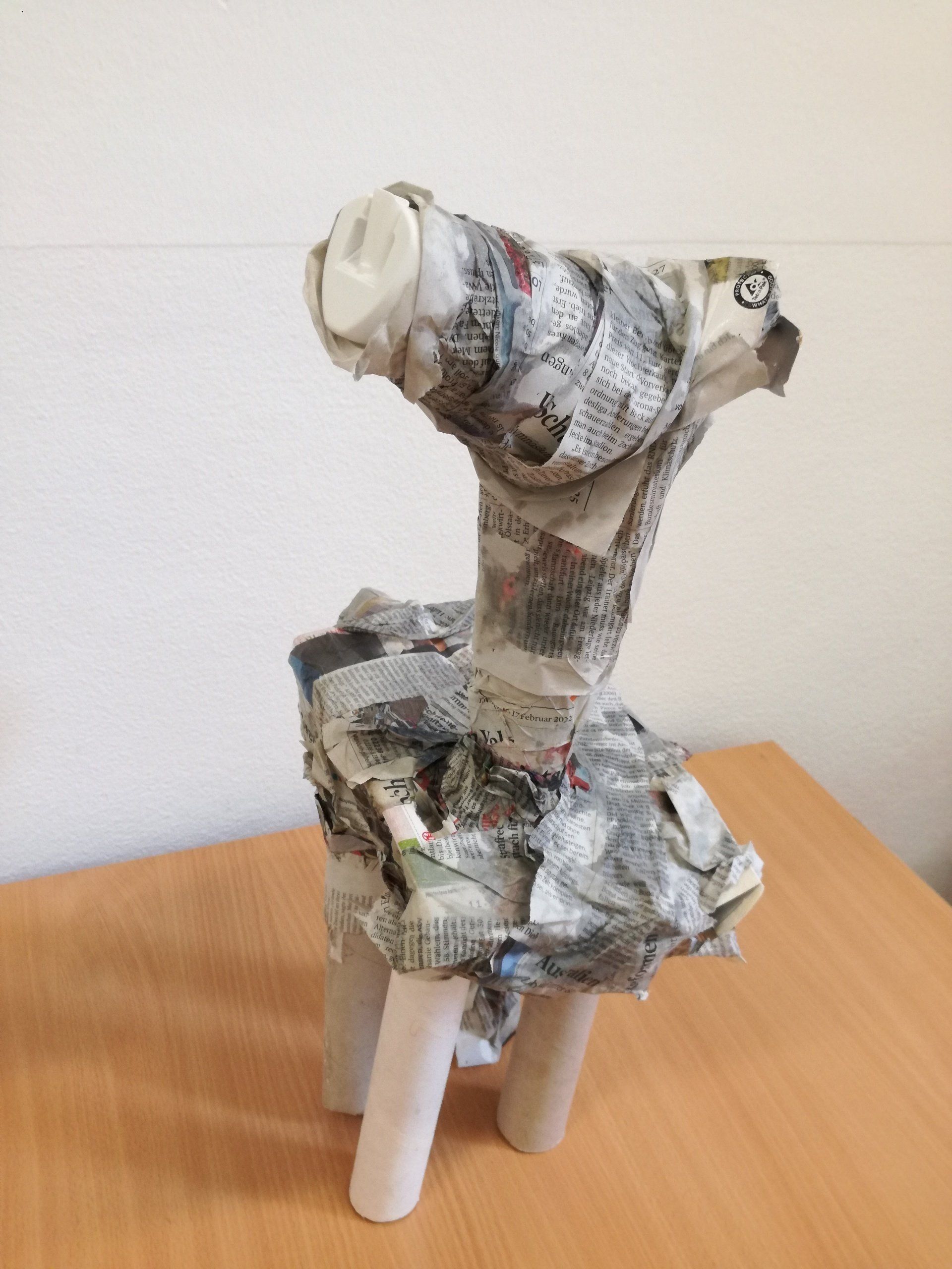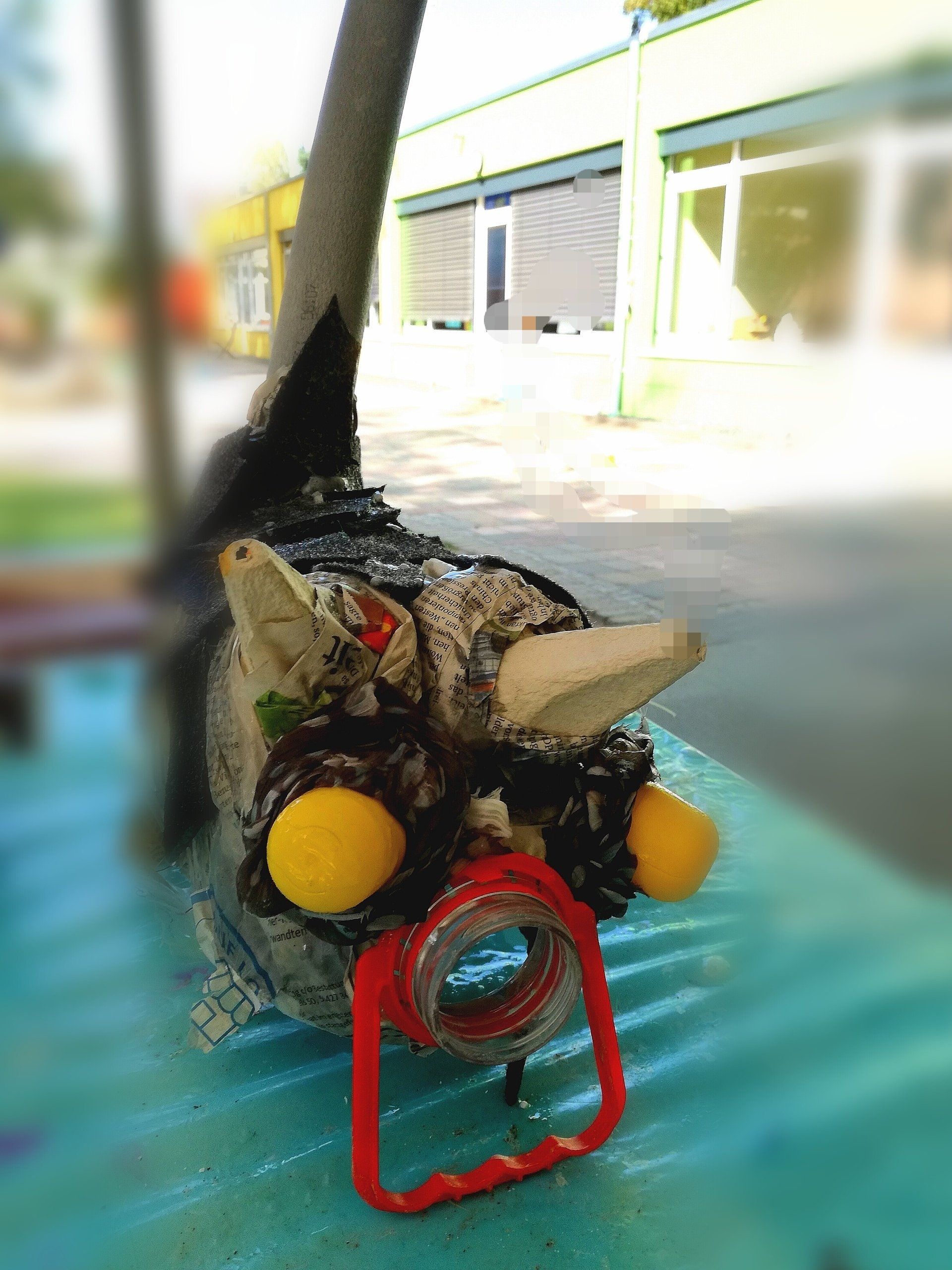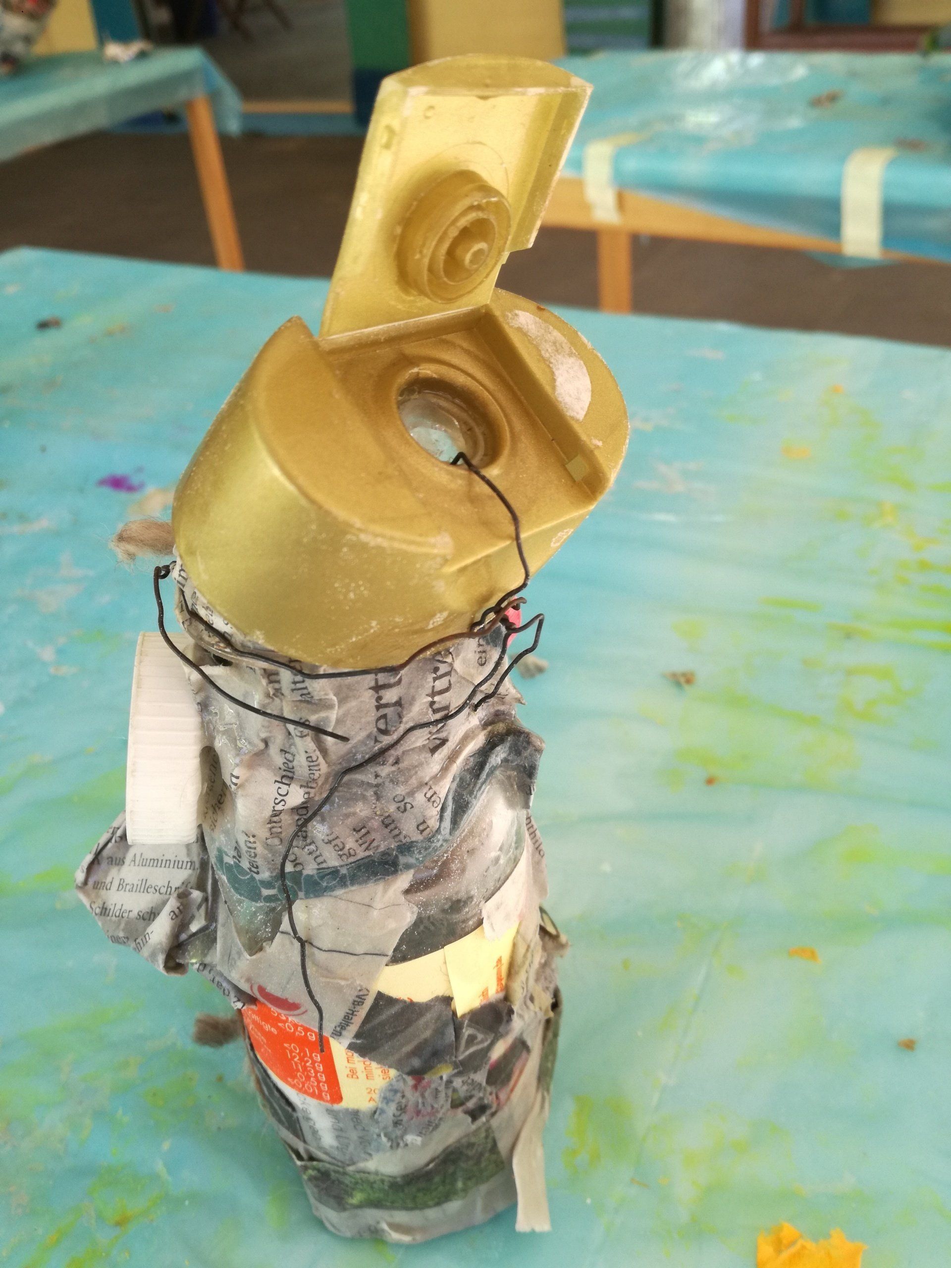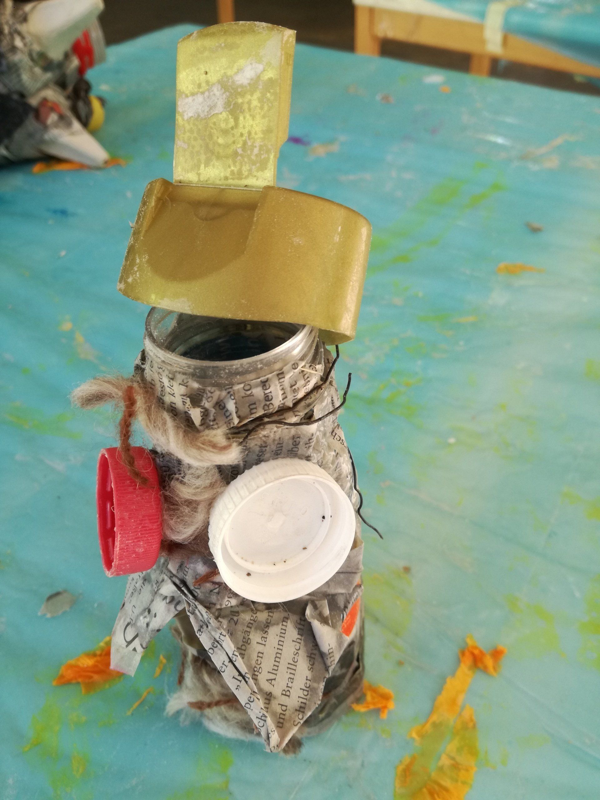 Upcyclingprojekt mit der OGS der Richeza- Grundschule 1. und 2. Klasse, Pulheim- Brauweiler. Gefördert von GIP. April und Mai 22, mit Katrin