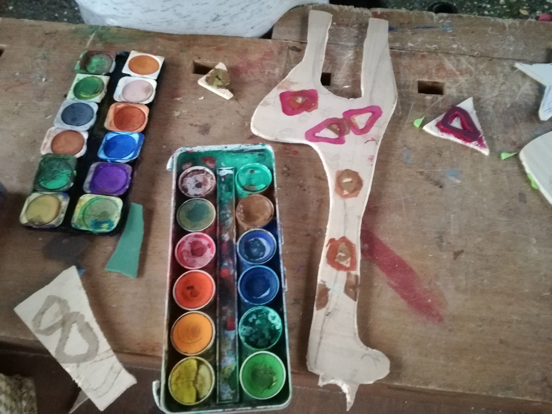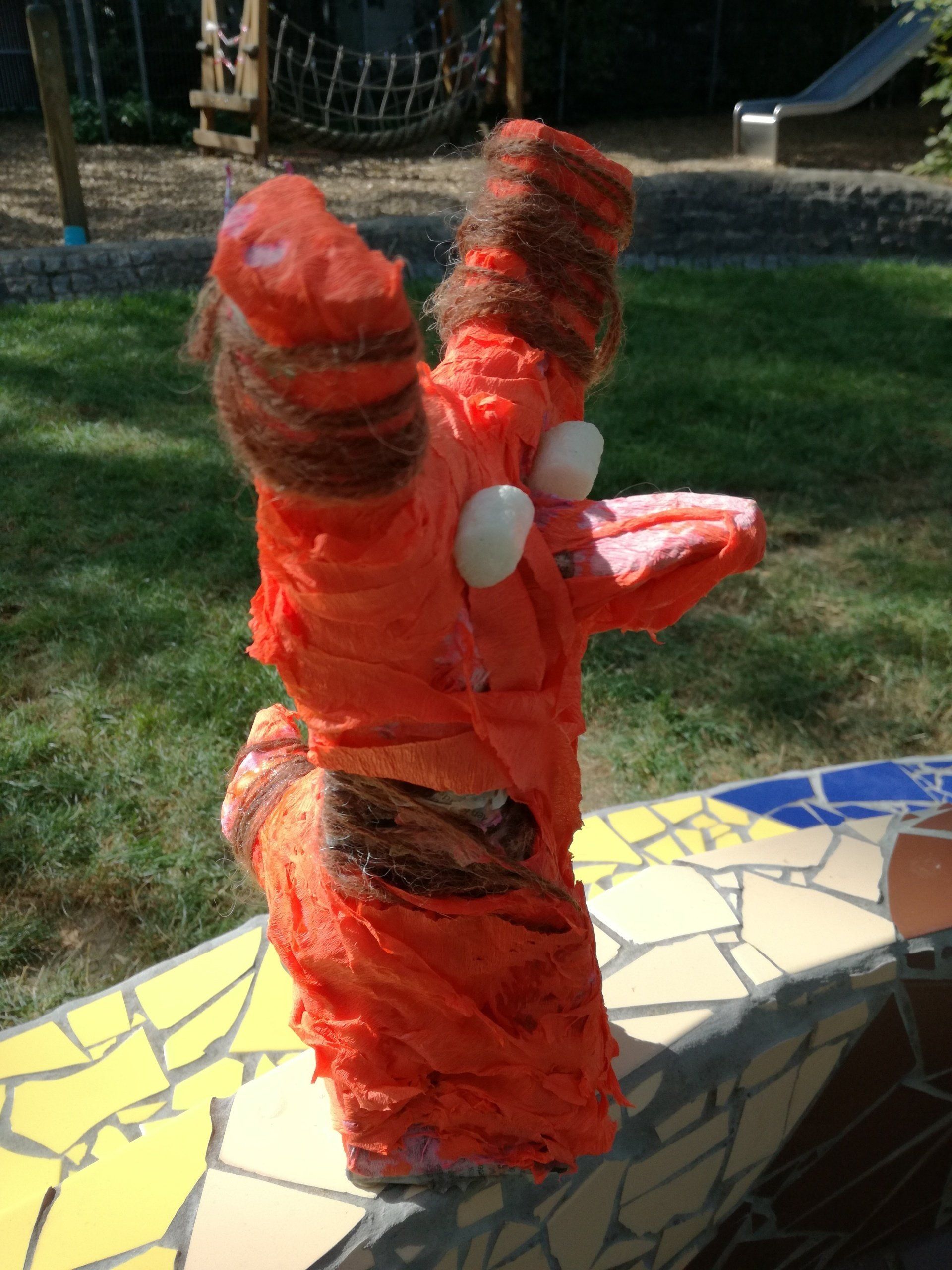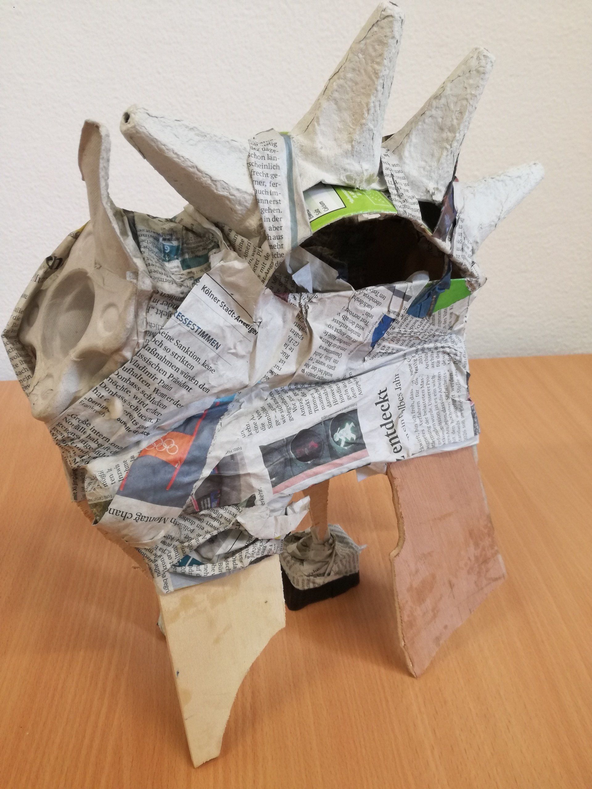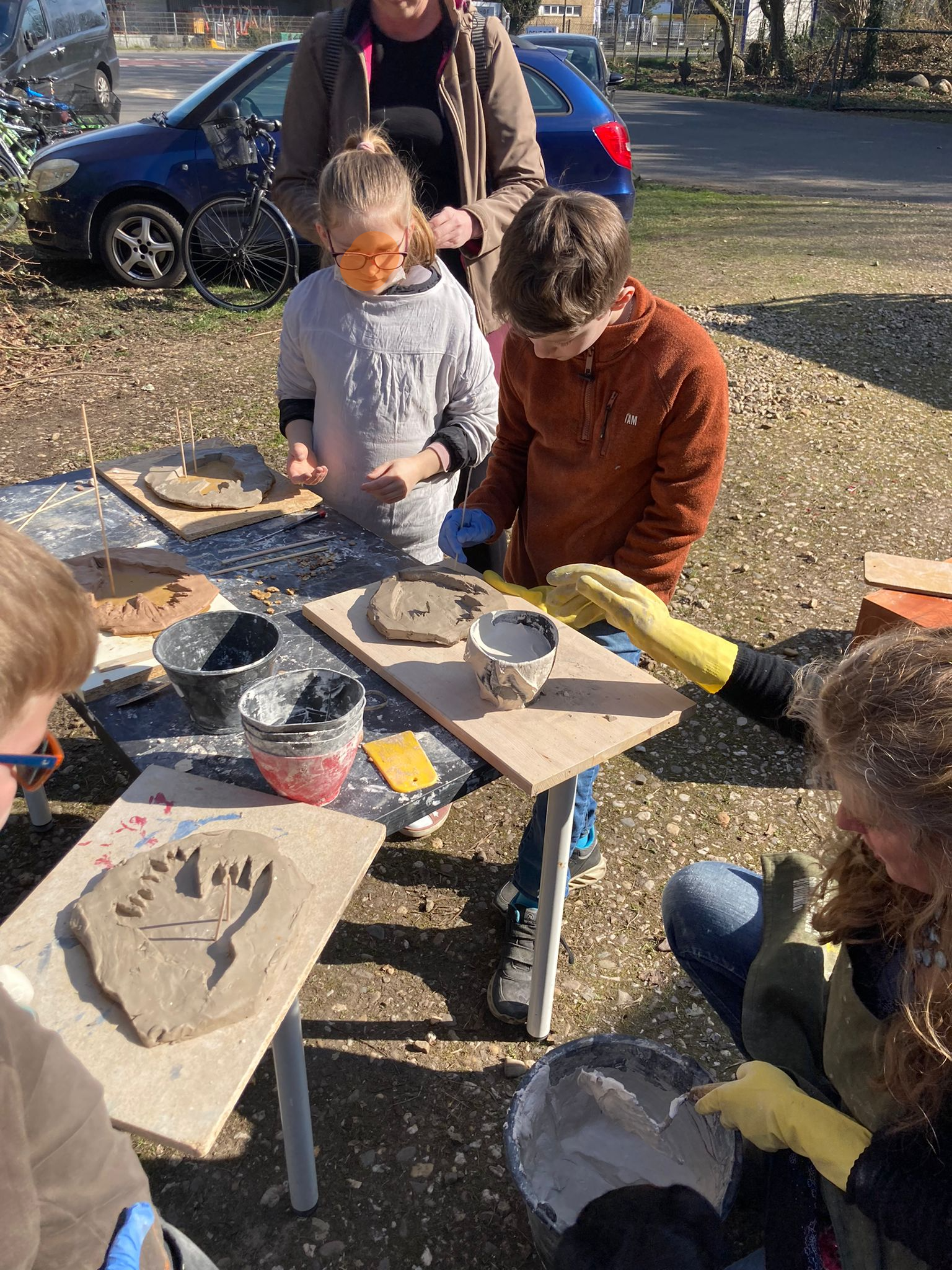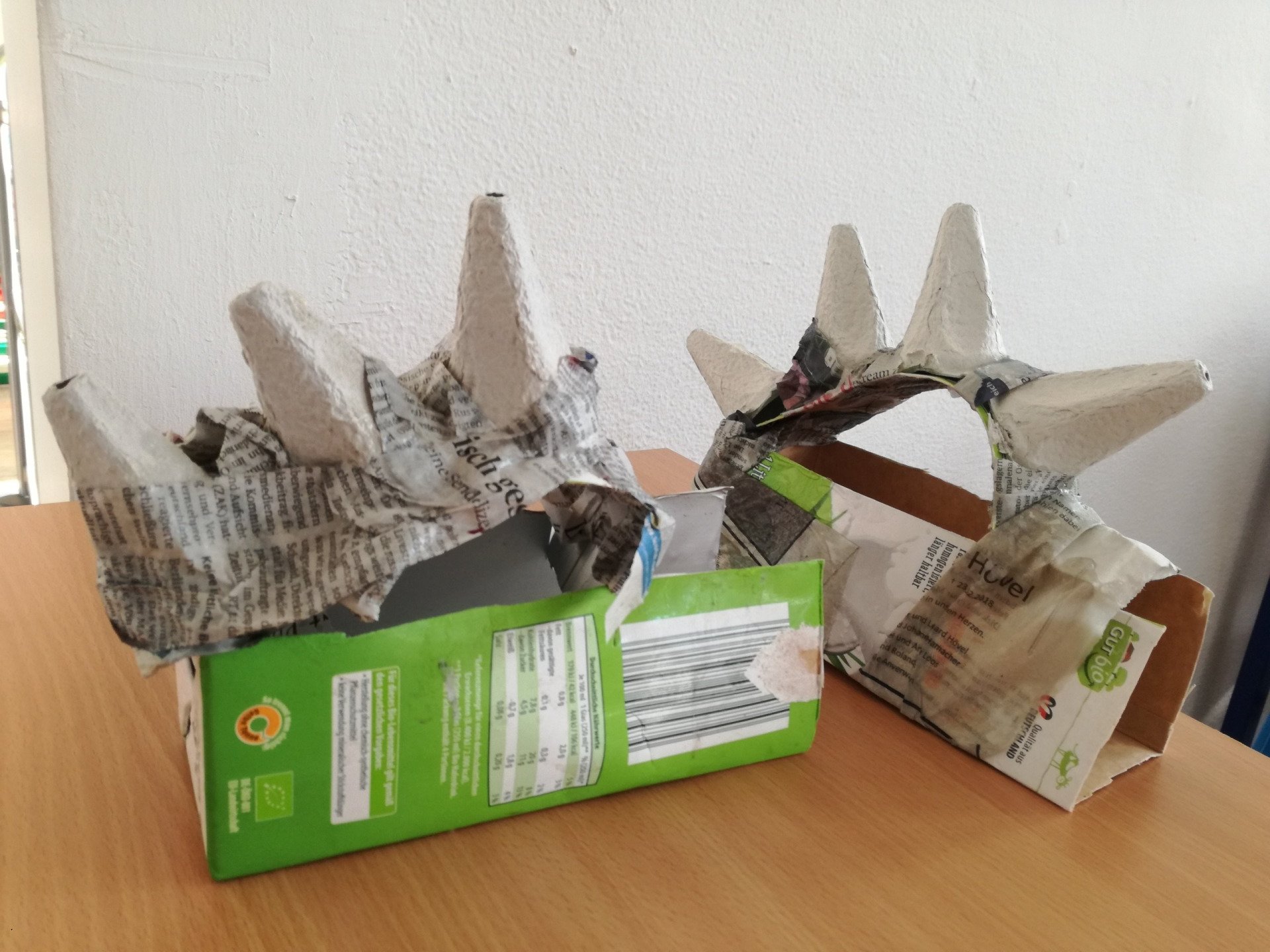 Upcyclingprojekt mit der OGS der Richeza- Grundschule 1. und 2. Klasse, Pulheim- Brauweiler. Gefördert von GIP. April und Mai 22, mit Katrin