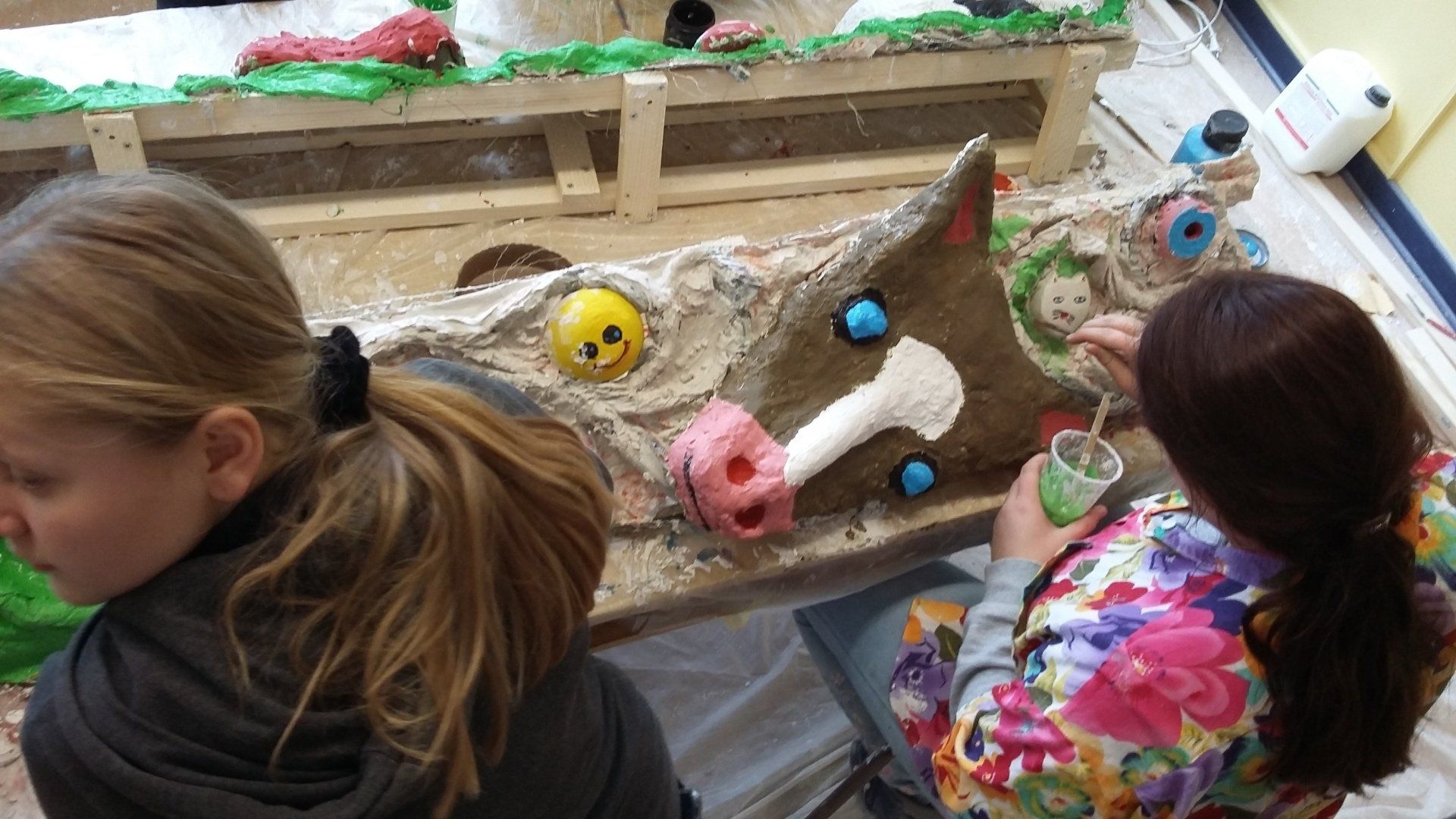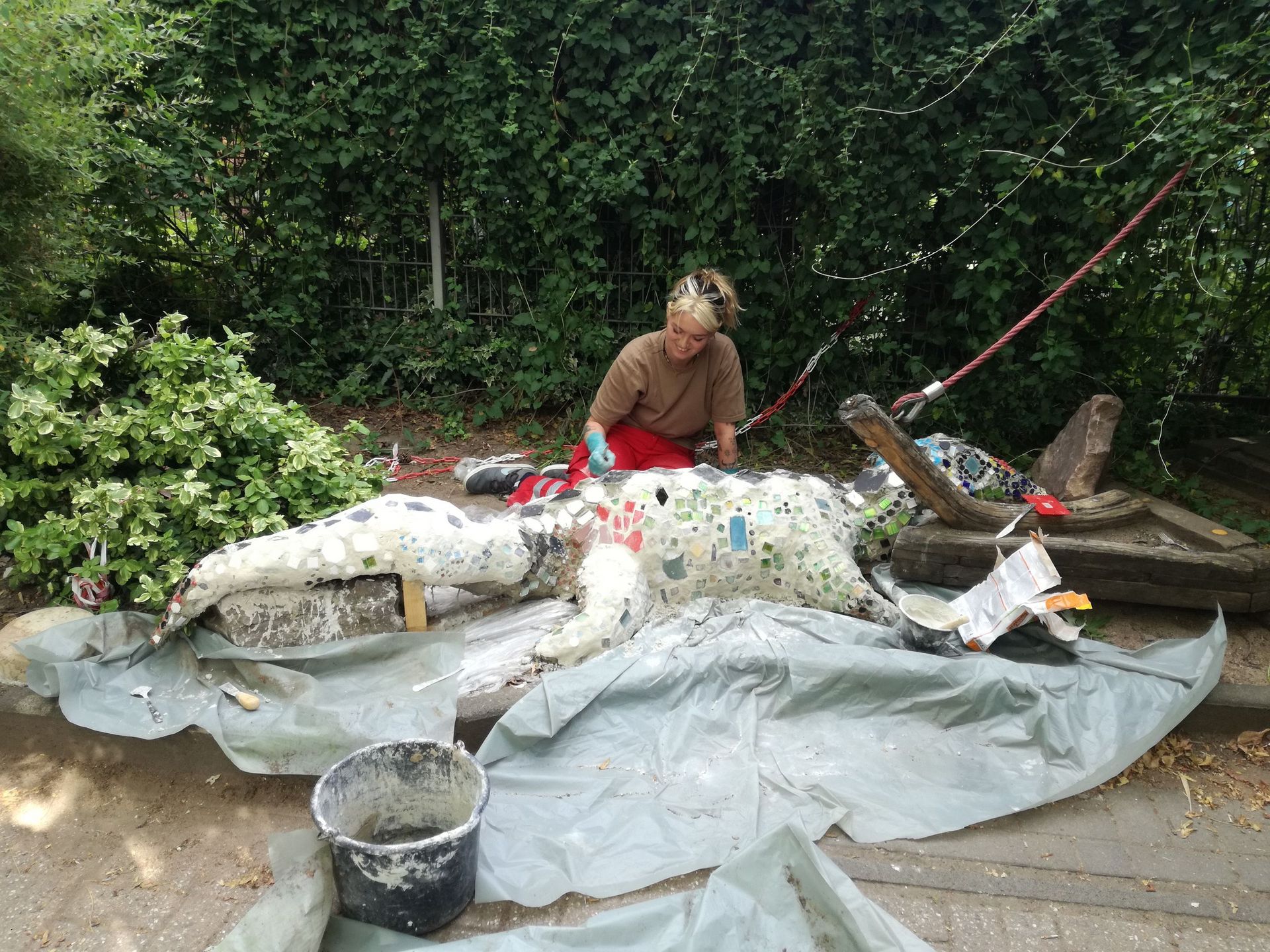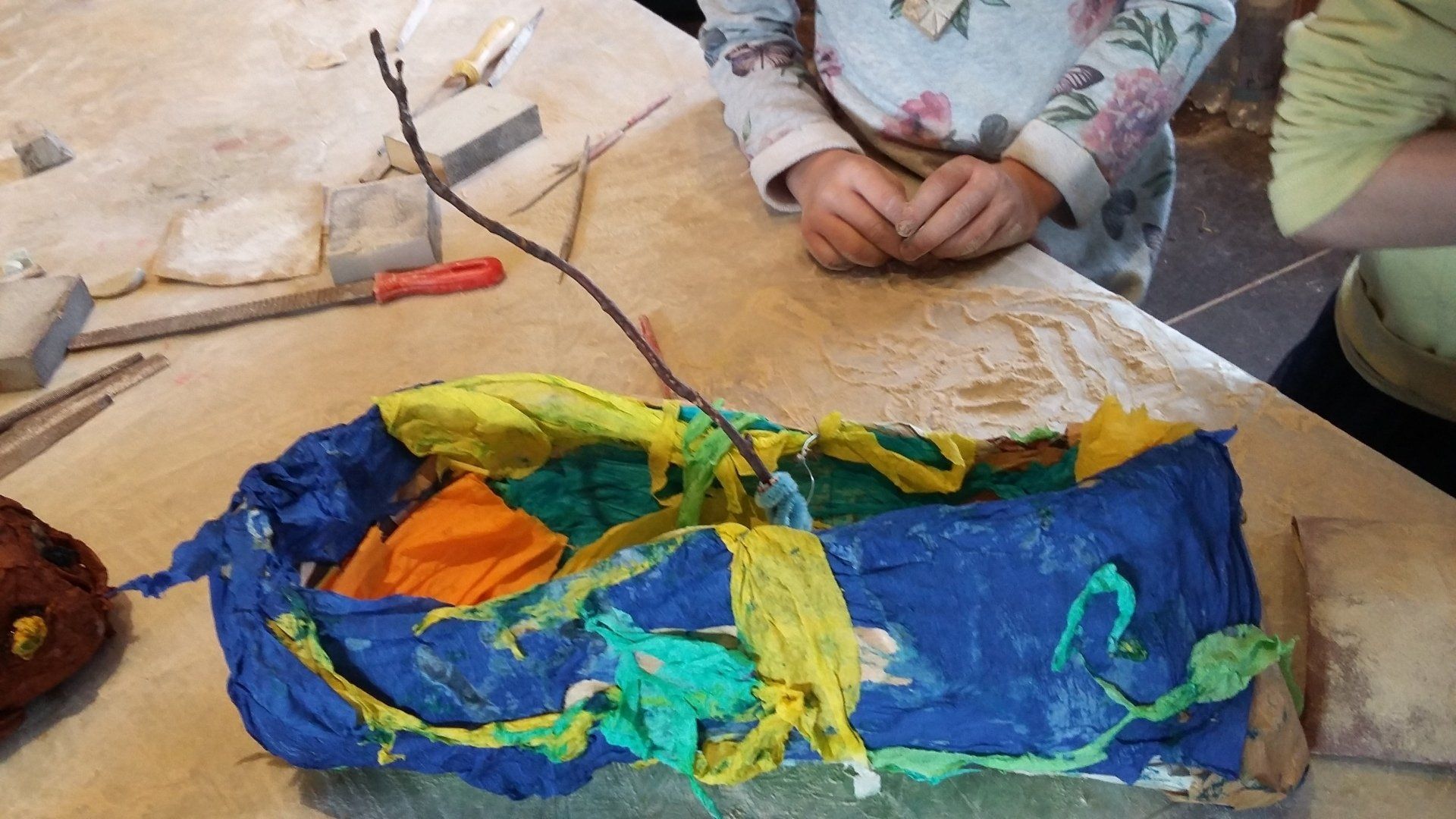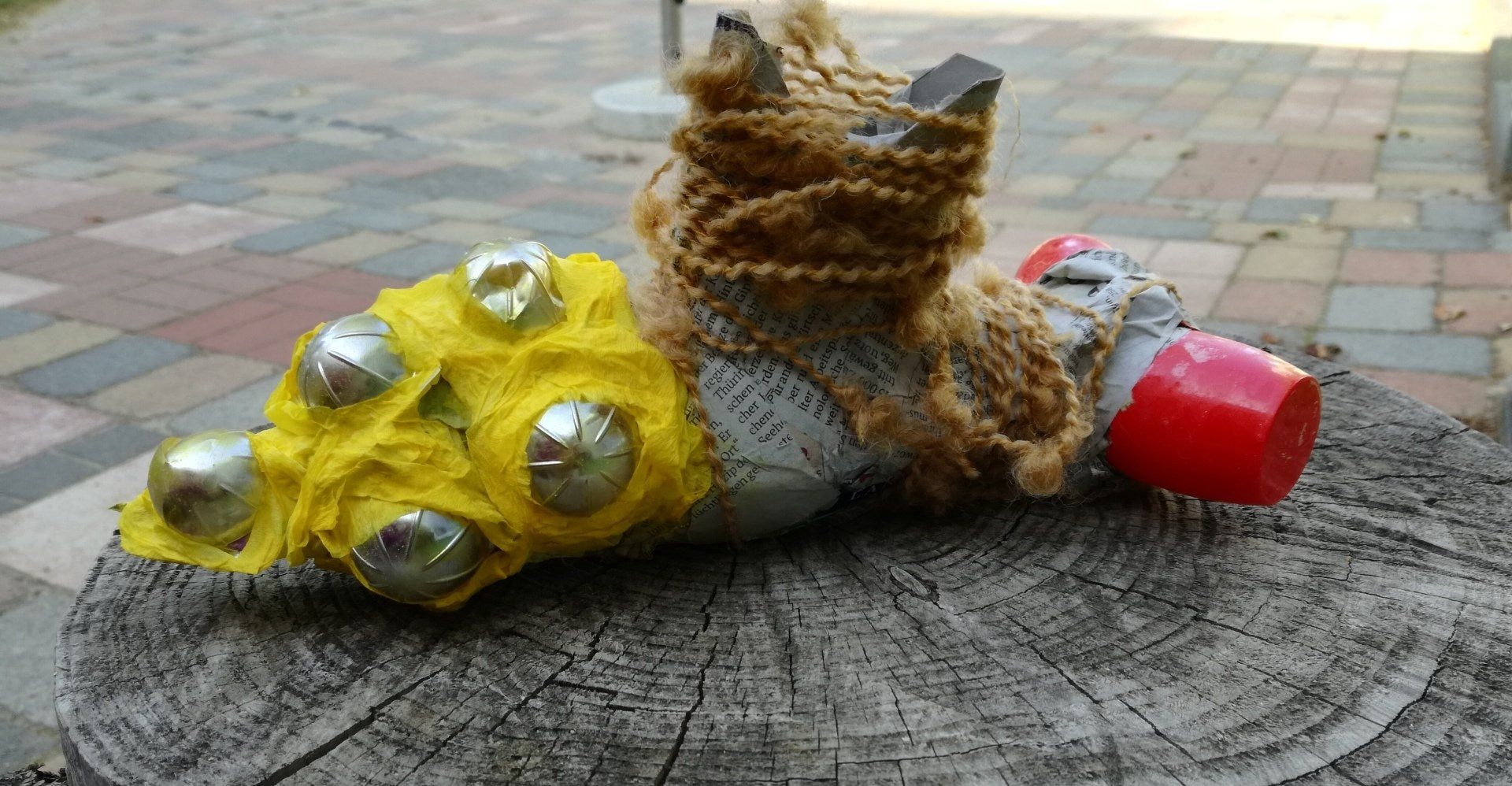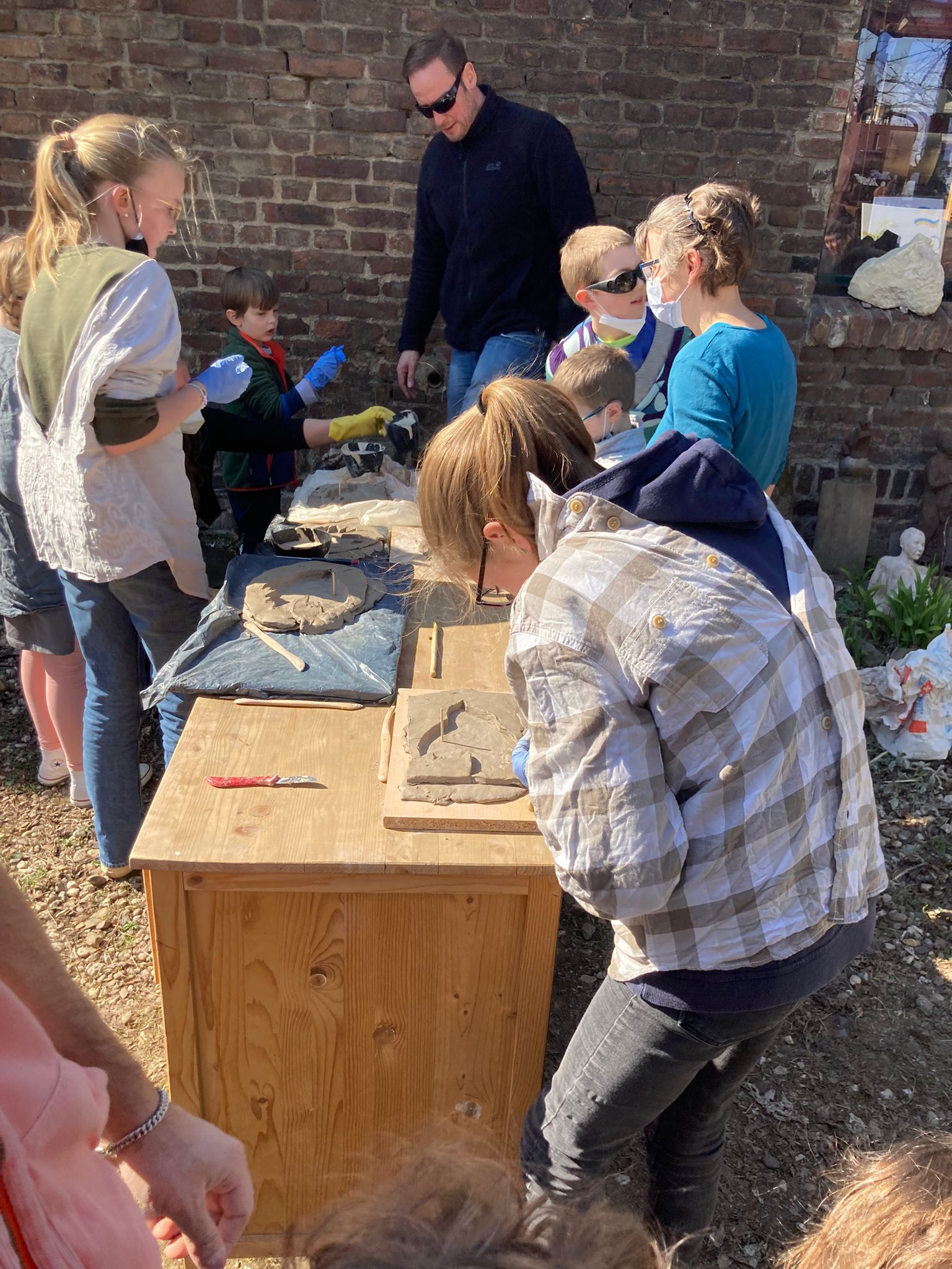 Upcyclingprojekt mit der OGS der Richeza- Grundschule 1. und 2. Klasse, Pulheim- Brauweiler. Gefördert von GIP. April und Mai 22, mit Katrin