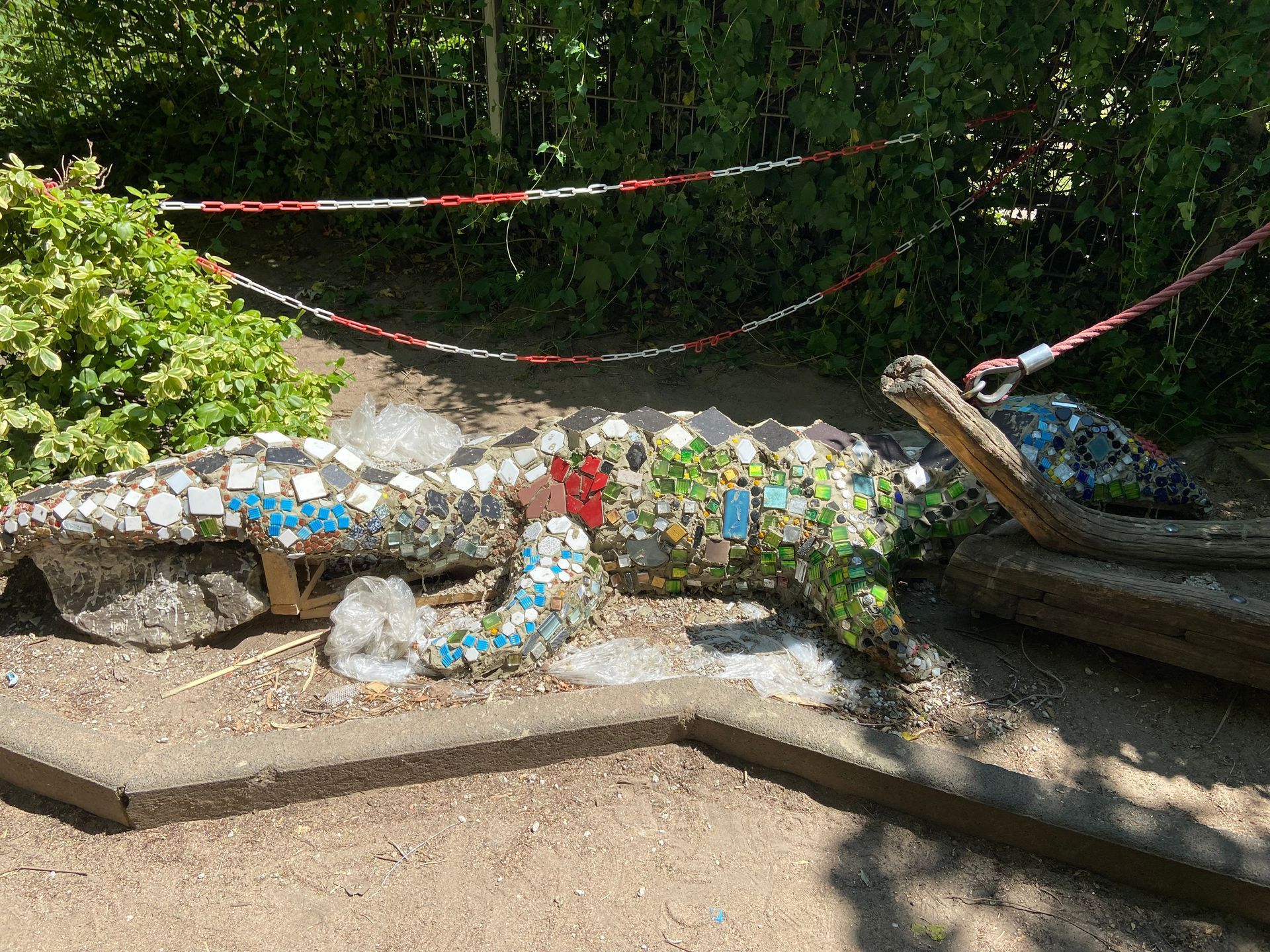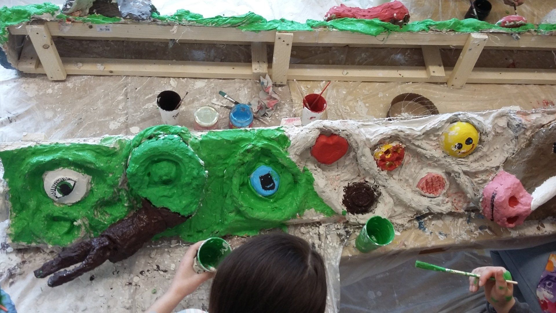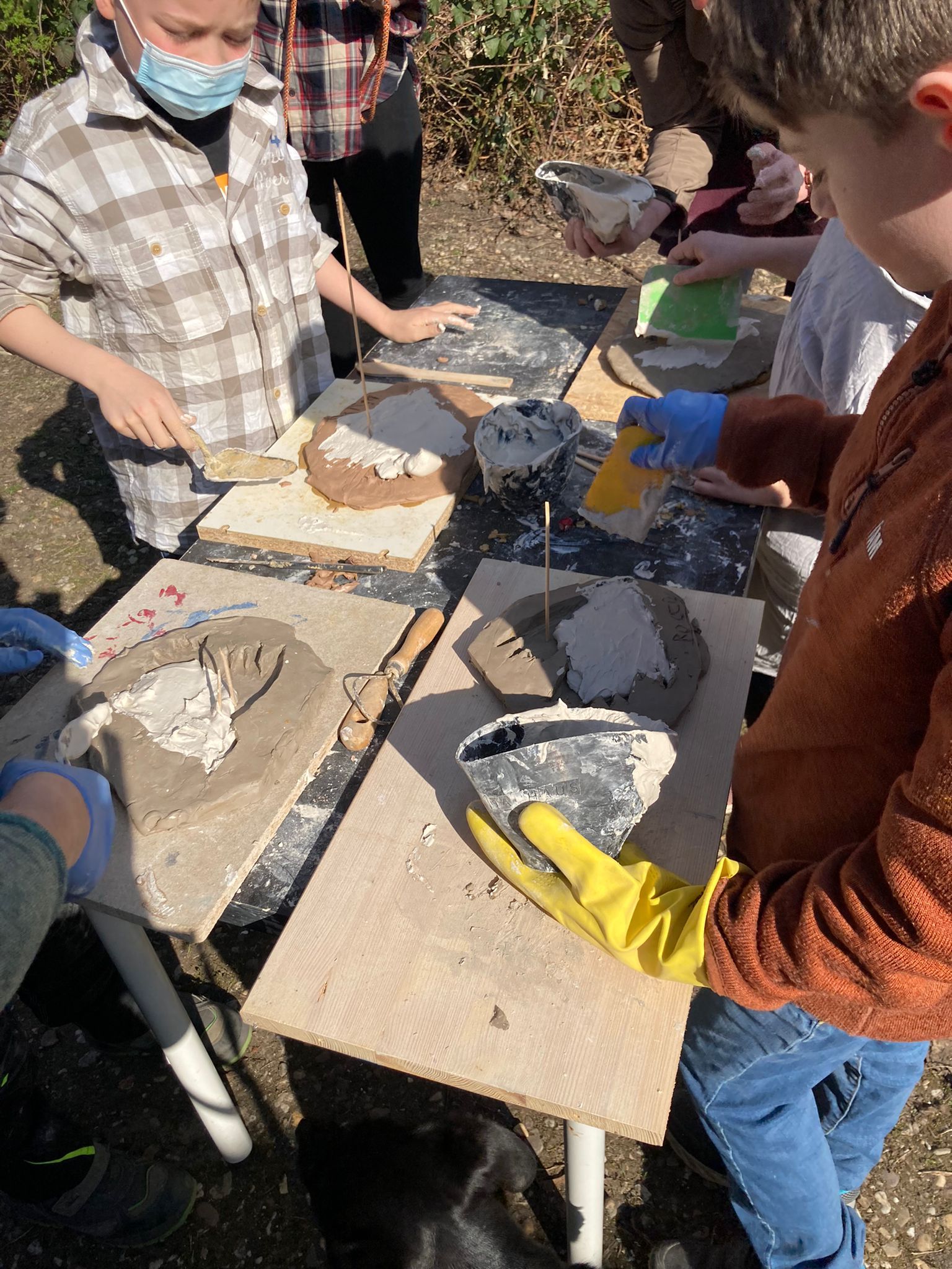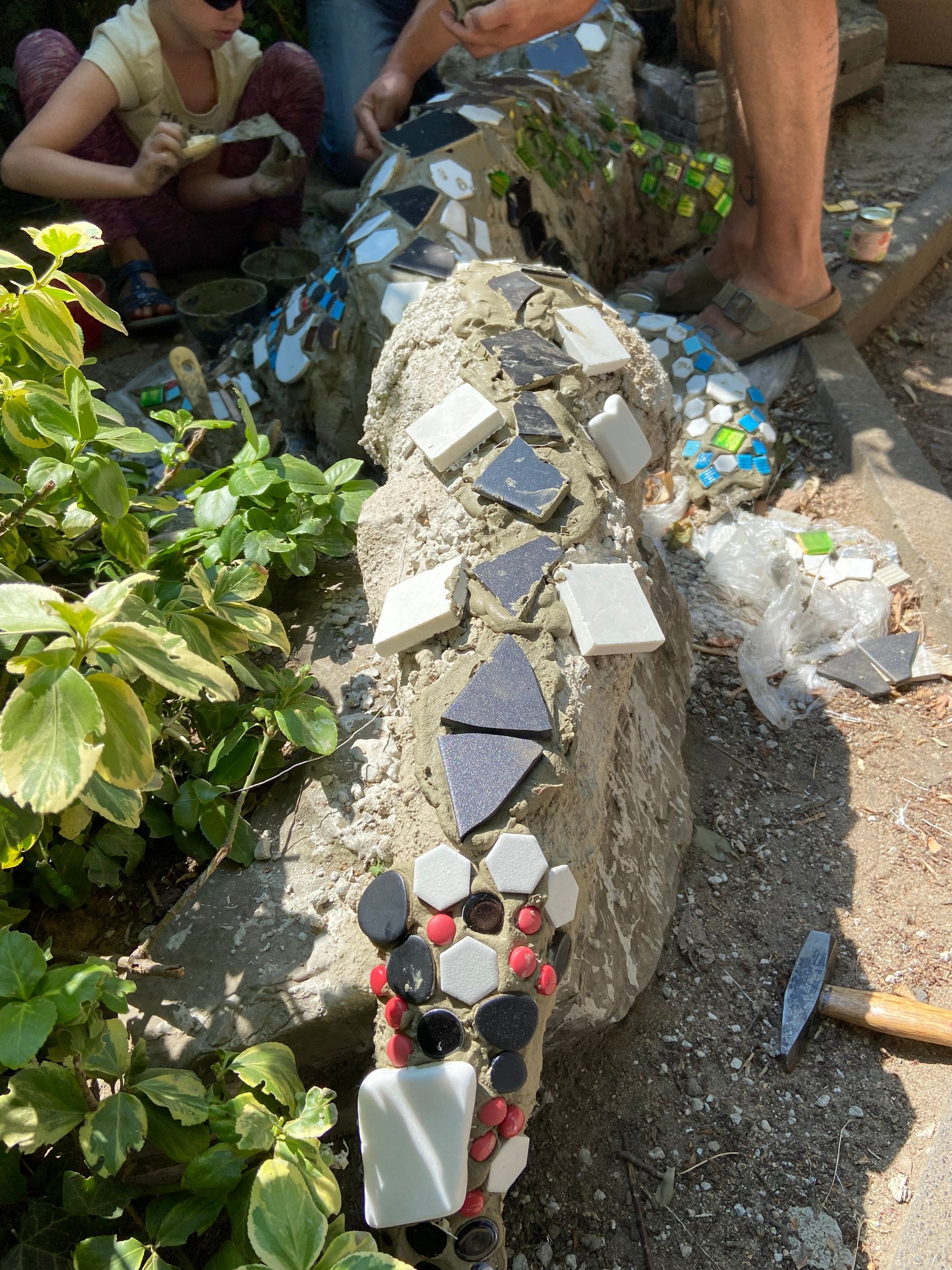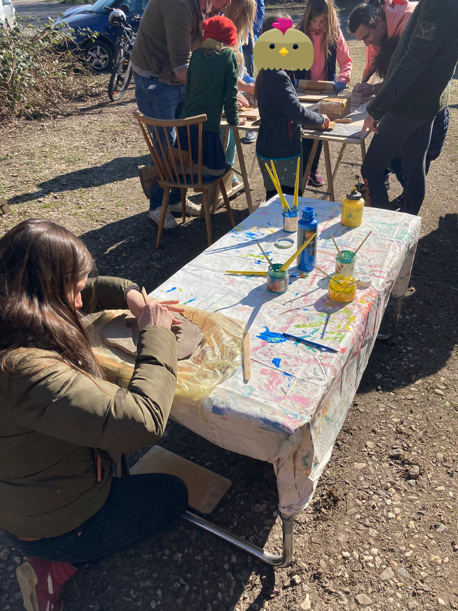 Upcyclingprojekt mit der OGS der Richeza- Grundschule 1. und 2. Klasse, Pulheim- Brauweiler. Gefördert von GIP. April und Mai 22, mit Katrin
