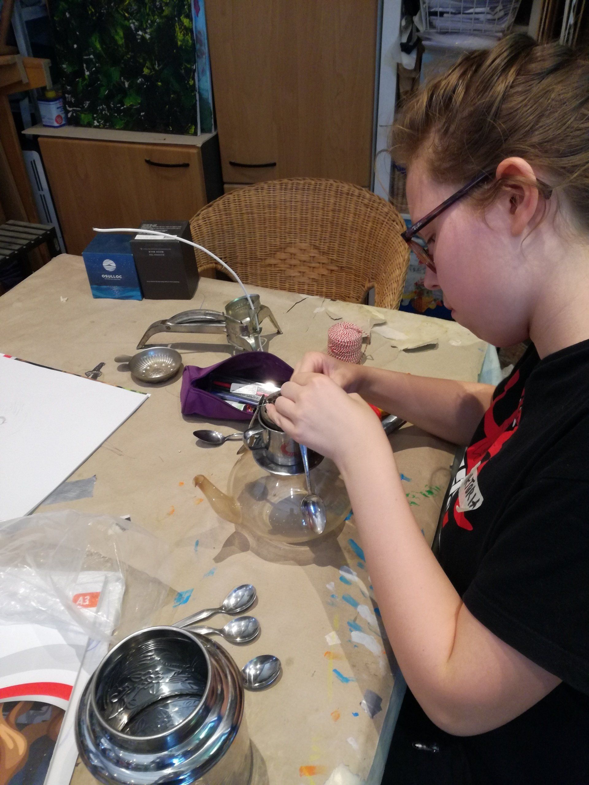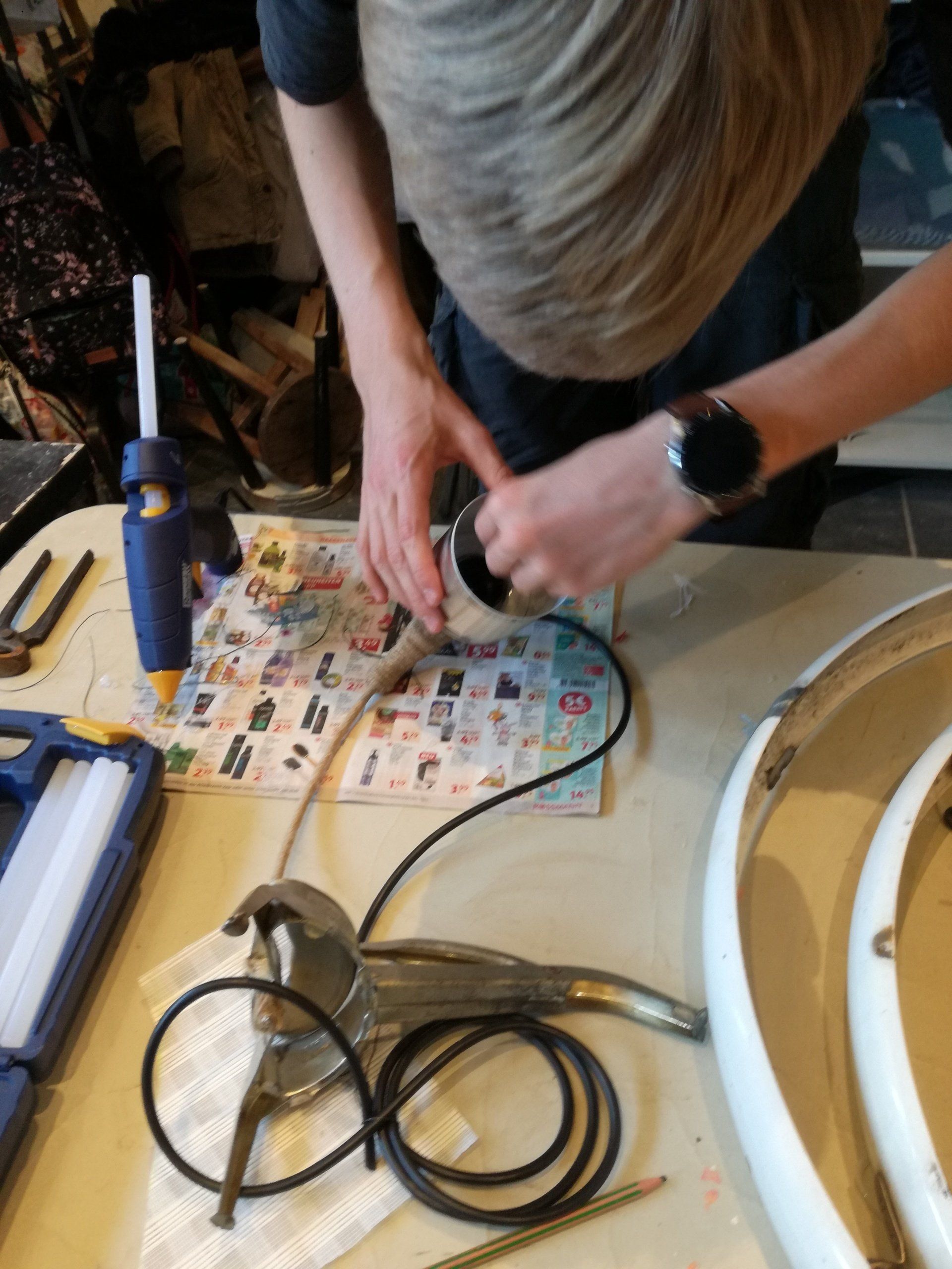 Upcyclinglampenbau mit Jugendlichen , gefördert durch ZDI Köln ( Zentrum durch Innovation) mit Katrin und EIk, Juli 22