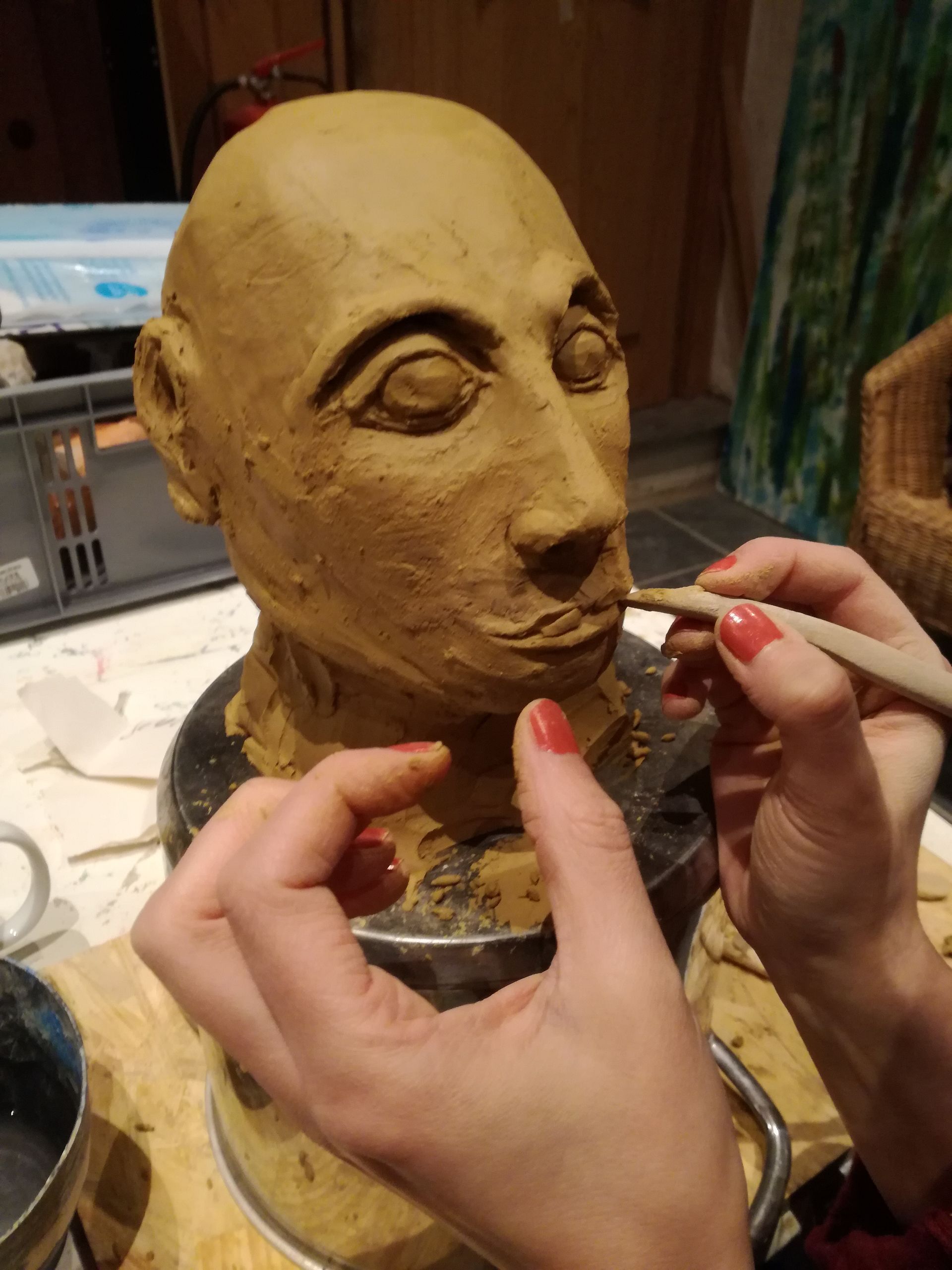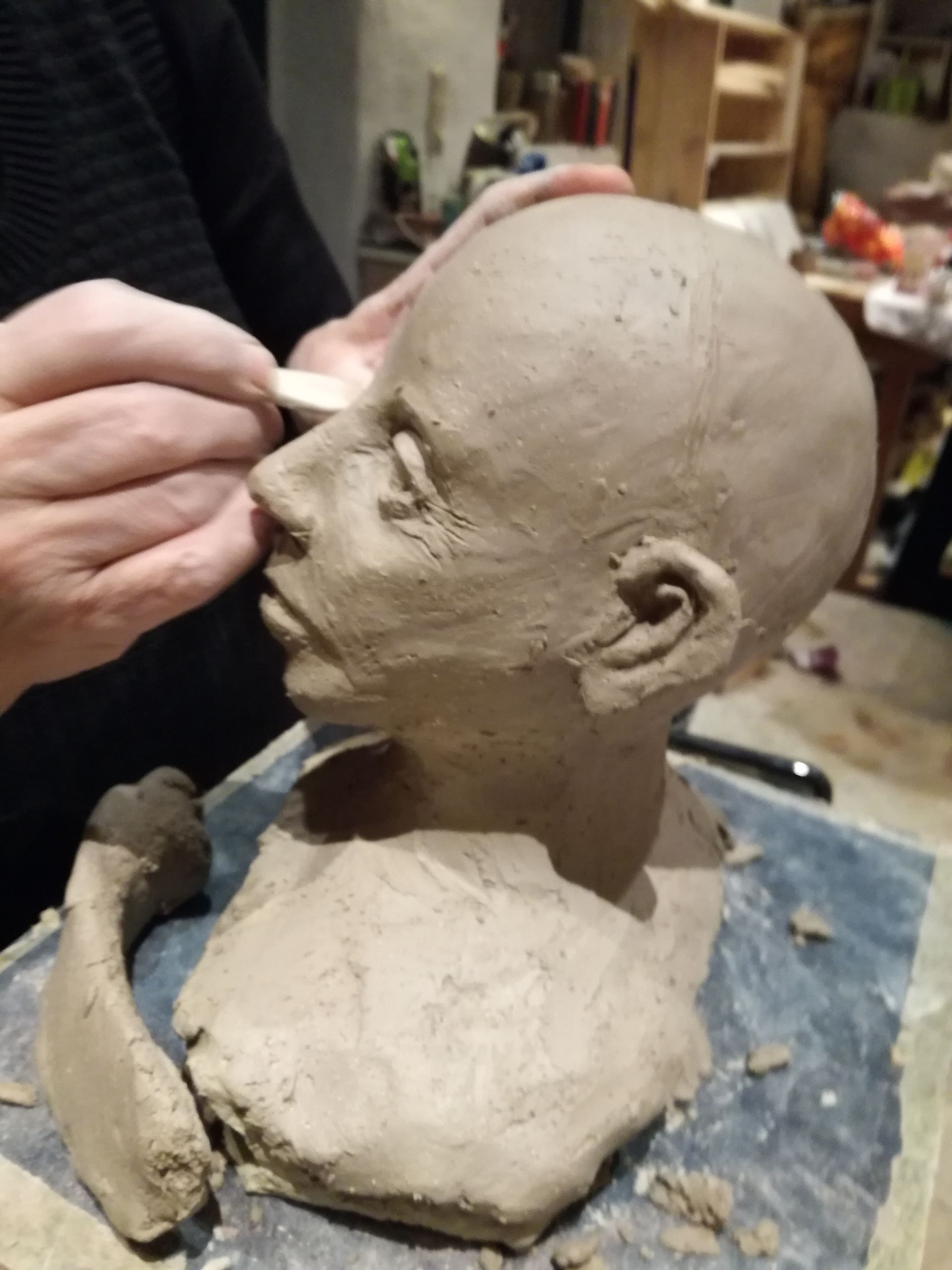 Portraitmodellieren in Ton fortlaufender Kurs bei Katrin 2023