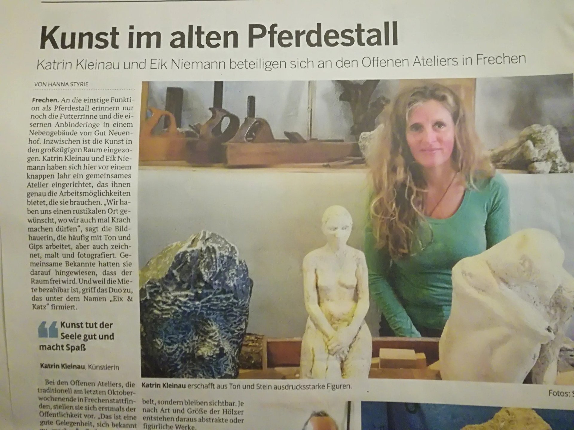 Ich habe Katrin Kleinau bei einem Porträtmodellier- Kurs kennengelernt, wo ich ihre Philosophie und Arbeitsweisen kennenlernen durfte.