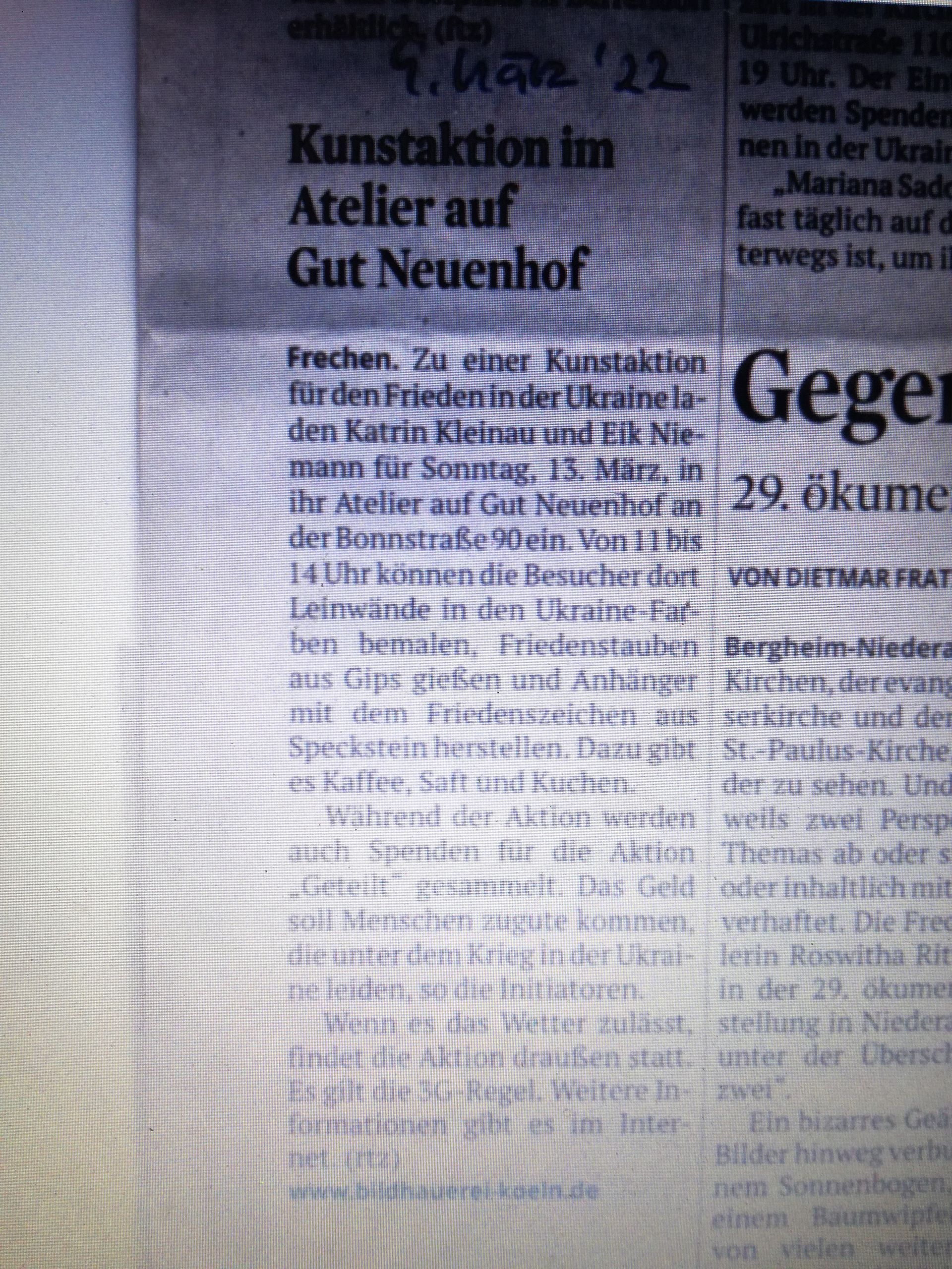 ° Wir würden uns sehr freuen, wenn wir die Fotos der bei uns entstandenen Kunstwerke zu Werbezwecken (ausschließlich die der Bildhauerei Köln ) verwenden dürften. Wenn Sie dies nicht wünschen, teilen Sie es uns bitte mit. Auf den von uns verwendeten Bildern sind keine Personen zu identifizieren, wir beachten den Datenschutz.