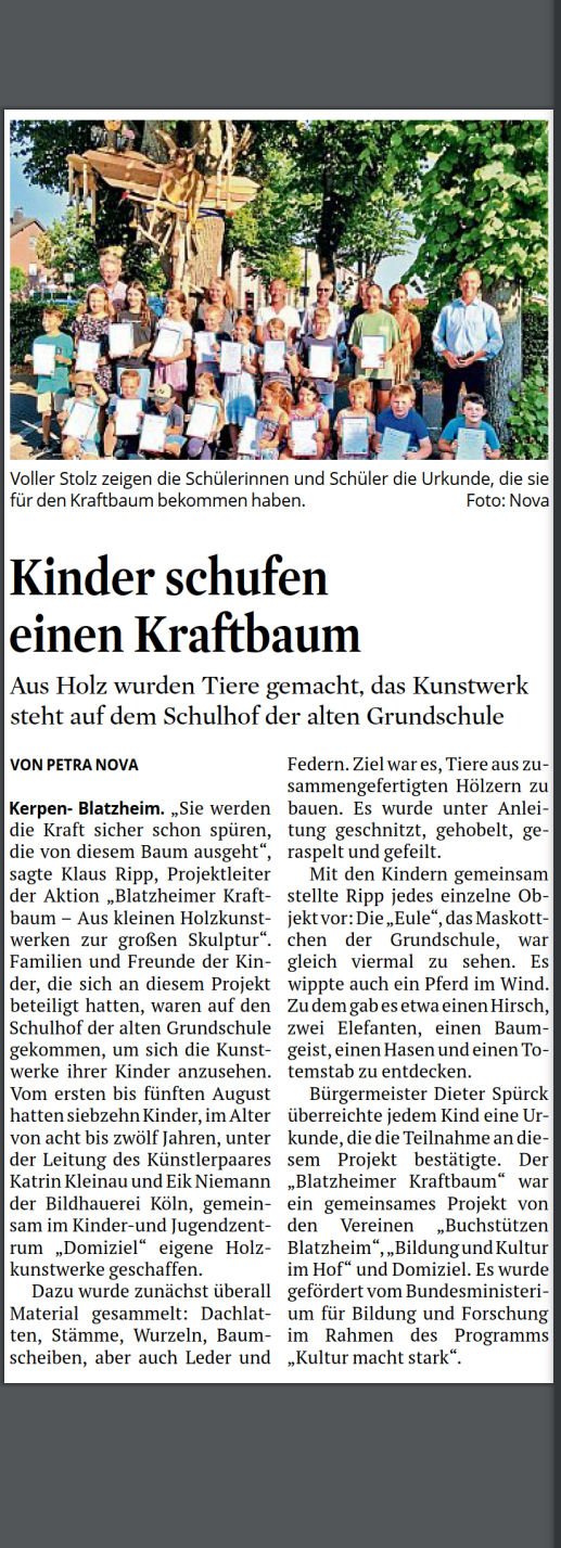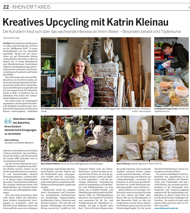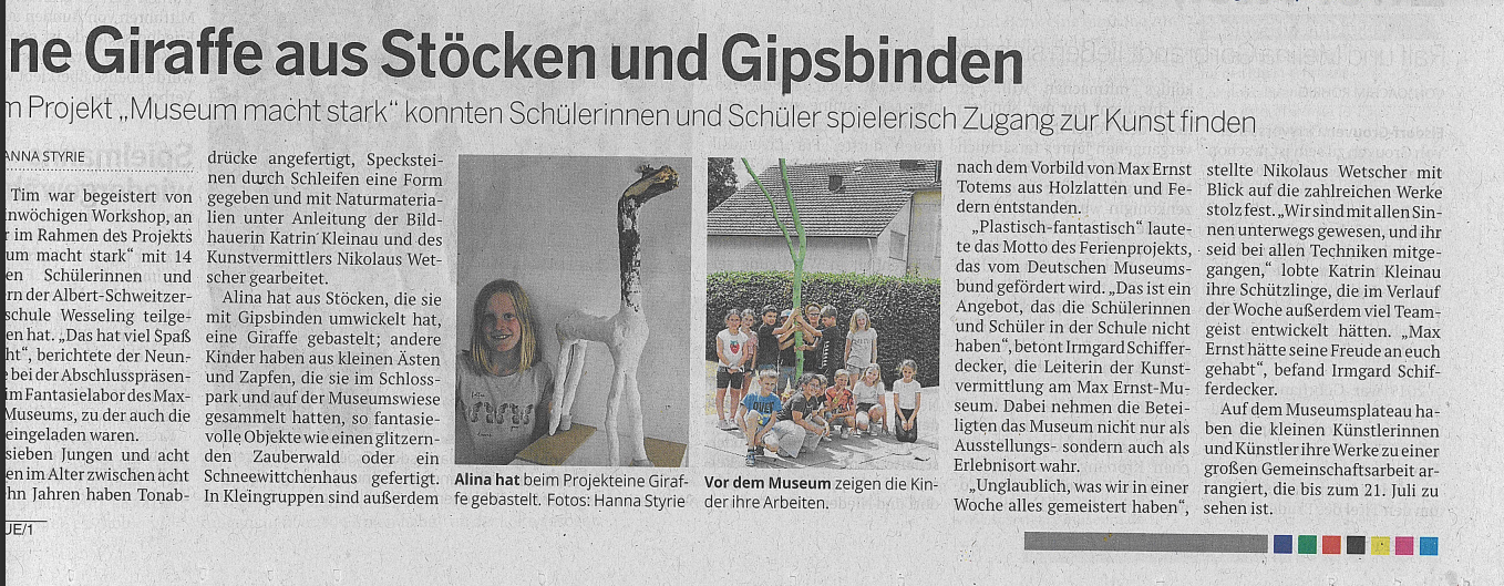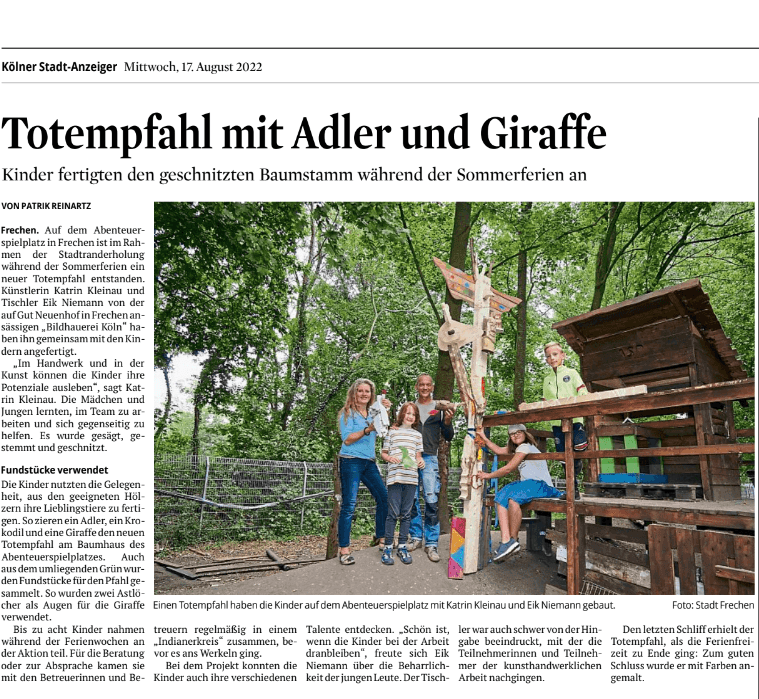Mich sprechen vor allem die Konzepte der Bildhauerei Köln an, wie der Zusammenschluss aus Kunst und Natur (im Wald) und das Atelier in der Ferienzeit. Zusammen Kunst neu zu entdecken und Kunst zu gestalten.