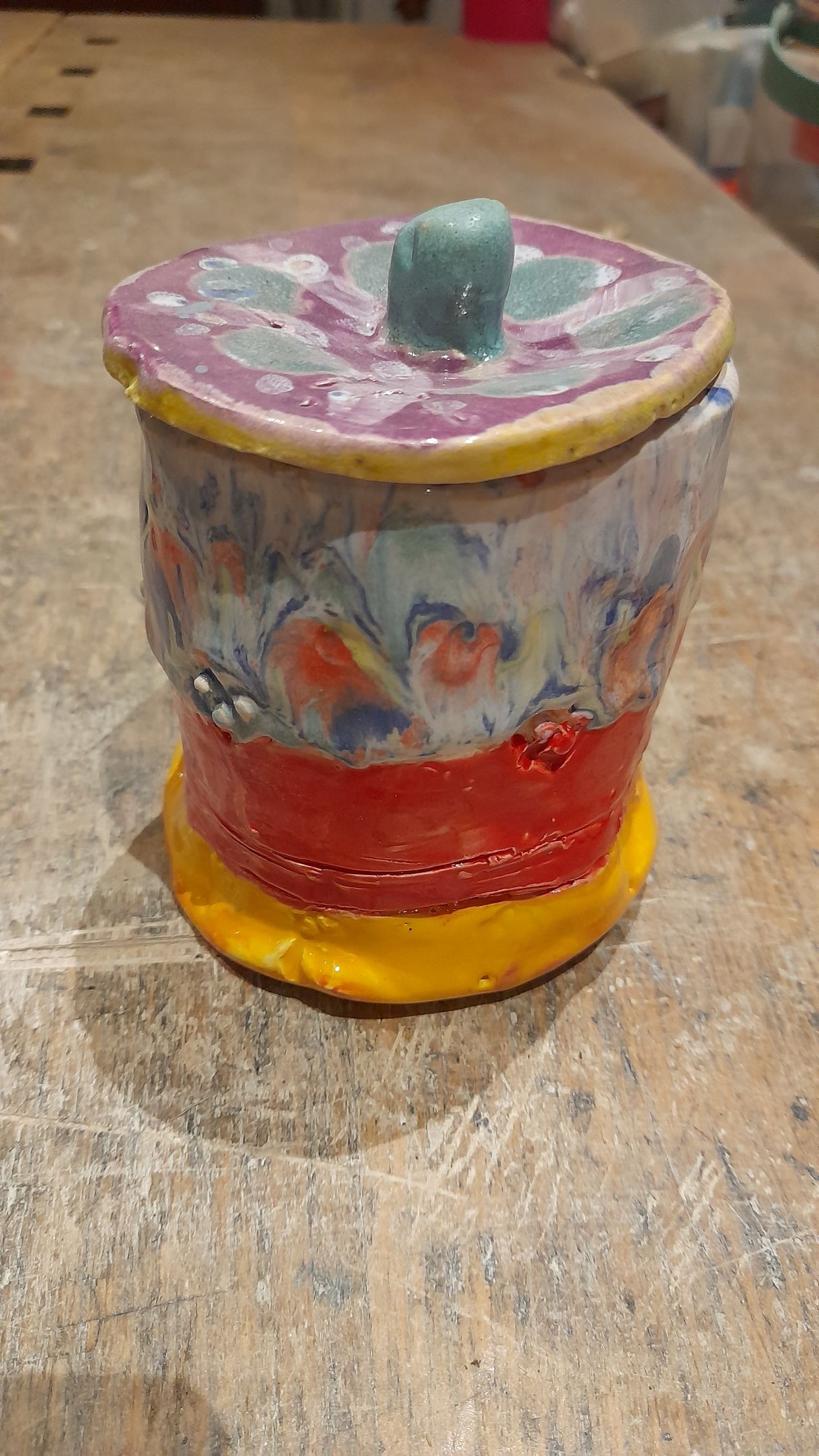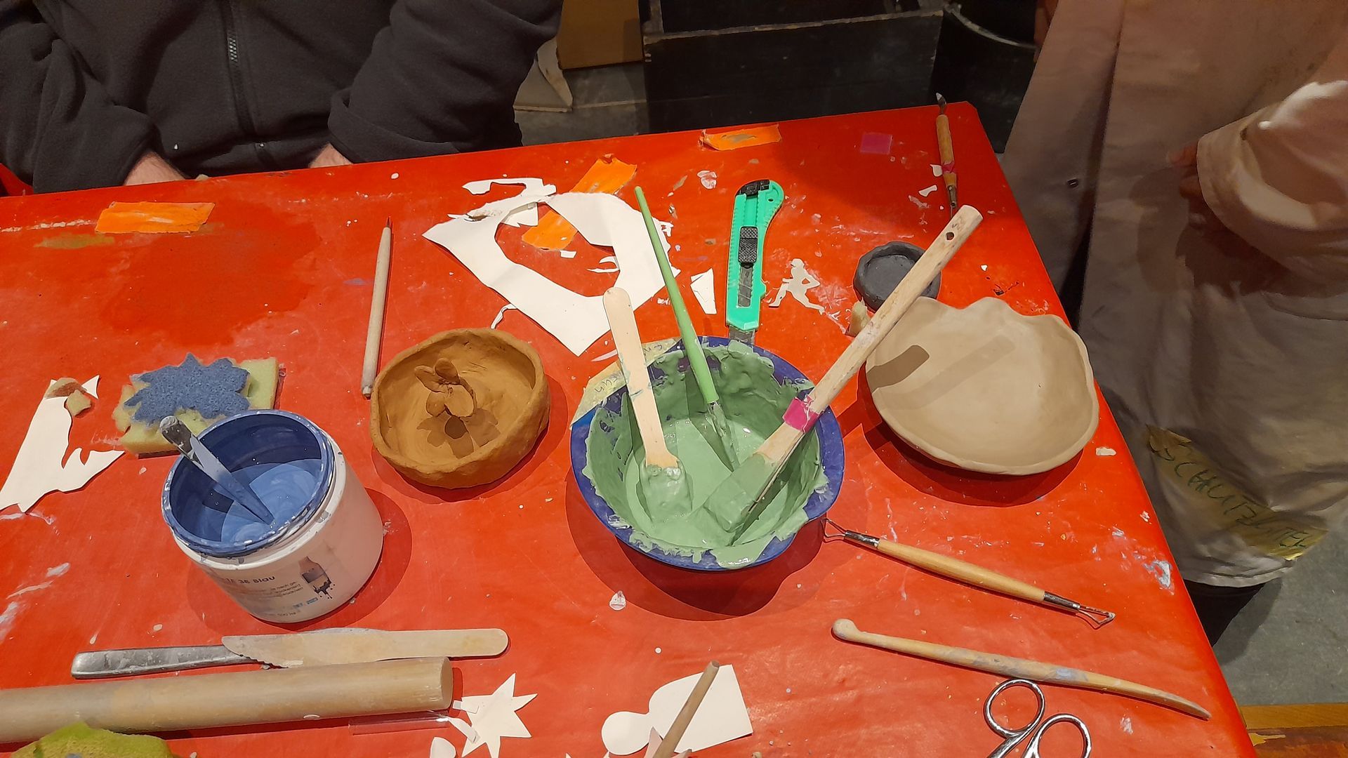 Parallel dazu kann frei gearbeitet werden , Gebrauchskeramik kann erstellt werden aber auch freie Formen , Figürliches oder freie Formen der Fantasie können entstehen.